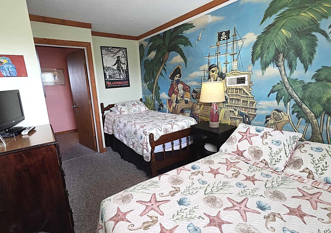 3 Bedrooms, 2.5 Baths: Primary Bedroom with Queen, 1 with Double, 1 with Double and Twin. Queen Sleeper Sofa in the living area.