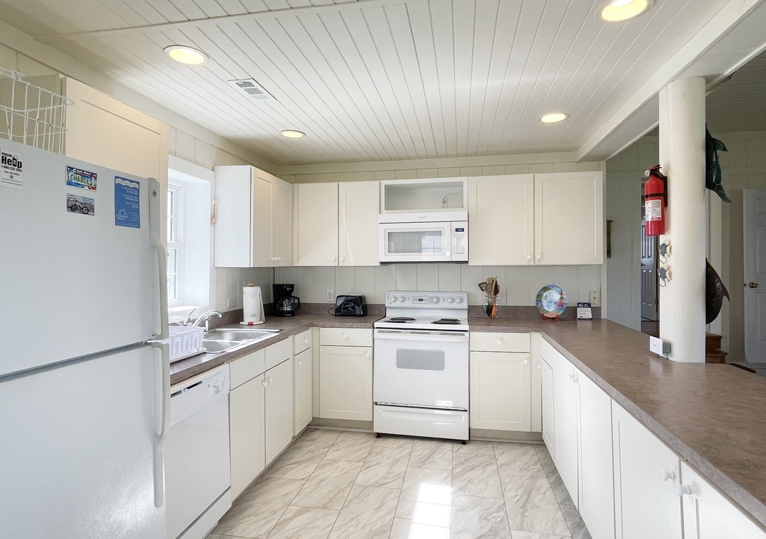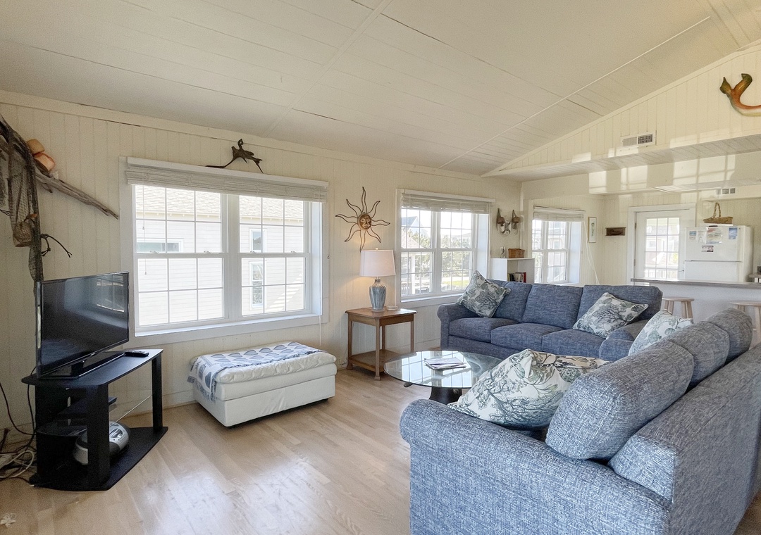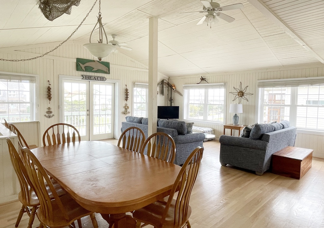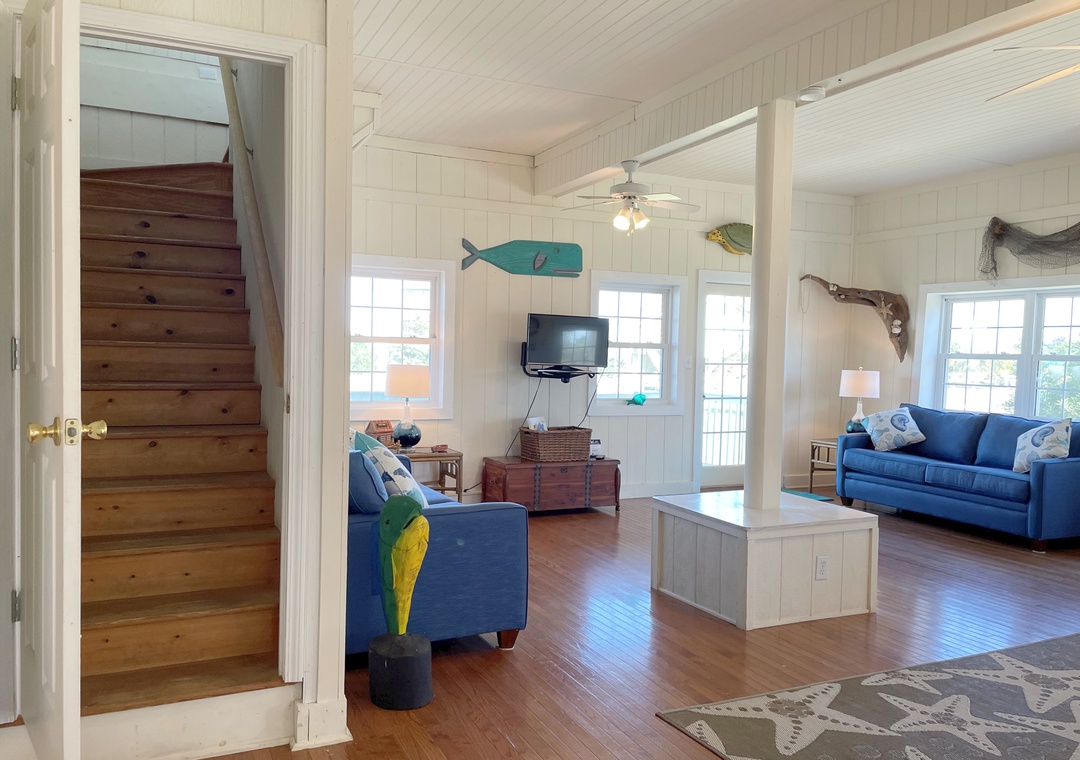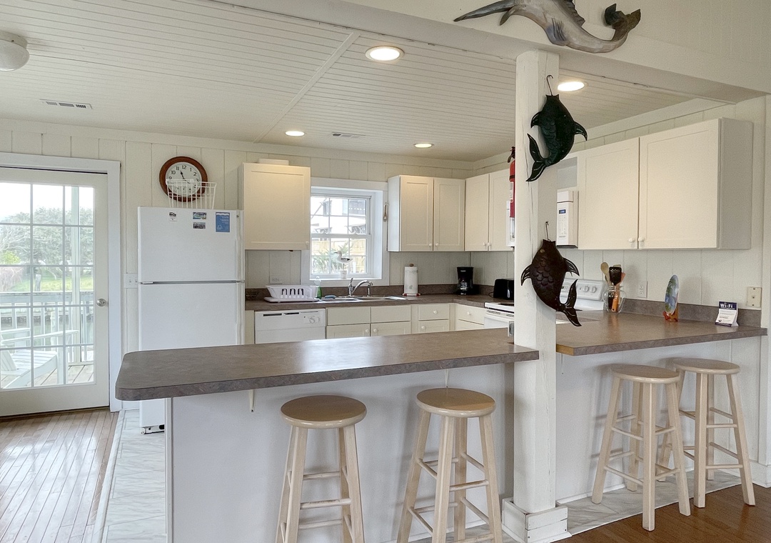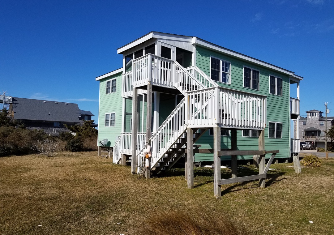 This large Ocracoke home offers wonderful accommodations for a large family. Enjoy the convenience of two separate kitchens and living areas. Take in the views of either the backyard canal with boat dockage or Pamlico Sound views across the street. The screened porches and decks provide relaxation in a comfortable outdoor setting.