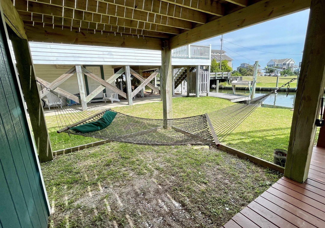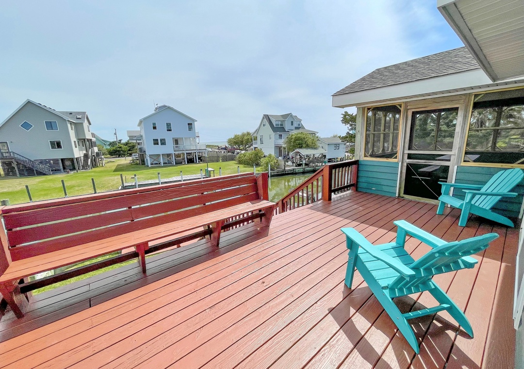 This family friendly Ocracoke Island vacation home is located on a canal with private deep water docking at your doorstep and beautiful distant sound views. The large open floor plan is great for family gatherings. Enjoy waterfront living complimented by generous decks, a picnic table and screened porch.