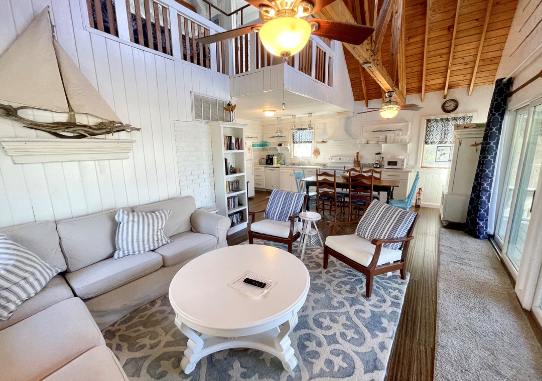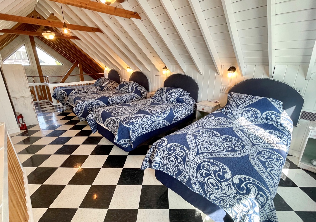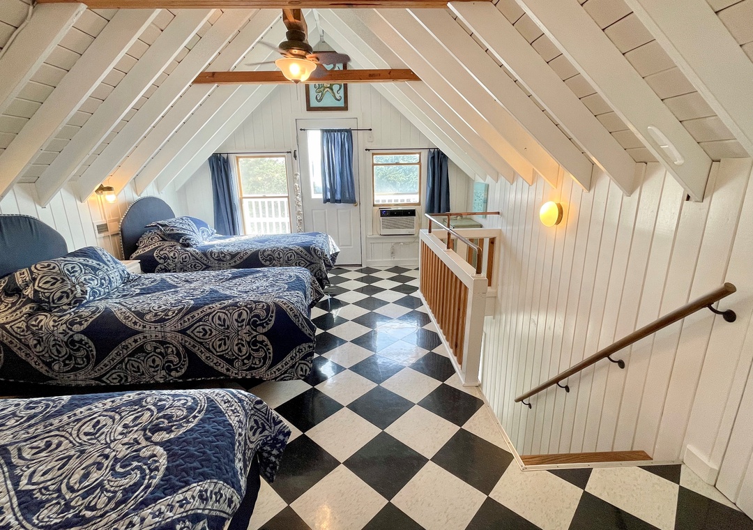 Second Floor: A loft on the second floor has 4 Twins, which offers flexible sleeping options (but does not allow occupancy over the 6 person limit). Two full baths, one with tub/shower and one with shower only. Bath with shower.