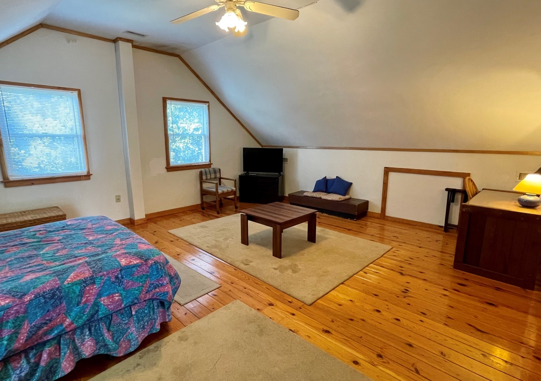 Second Floor: Bedroom with Queen Bed. Bedroom with Queen Bed, TV. Bath with tub/shower.