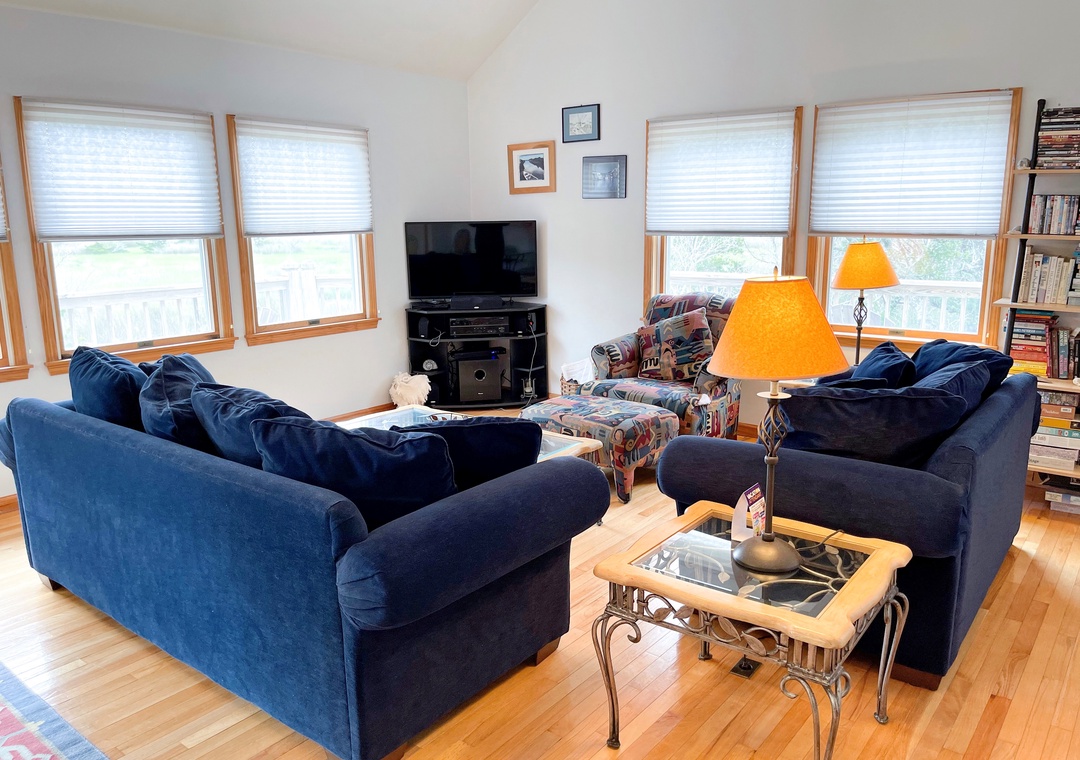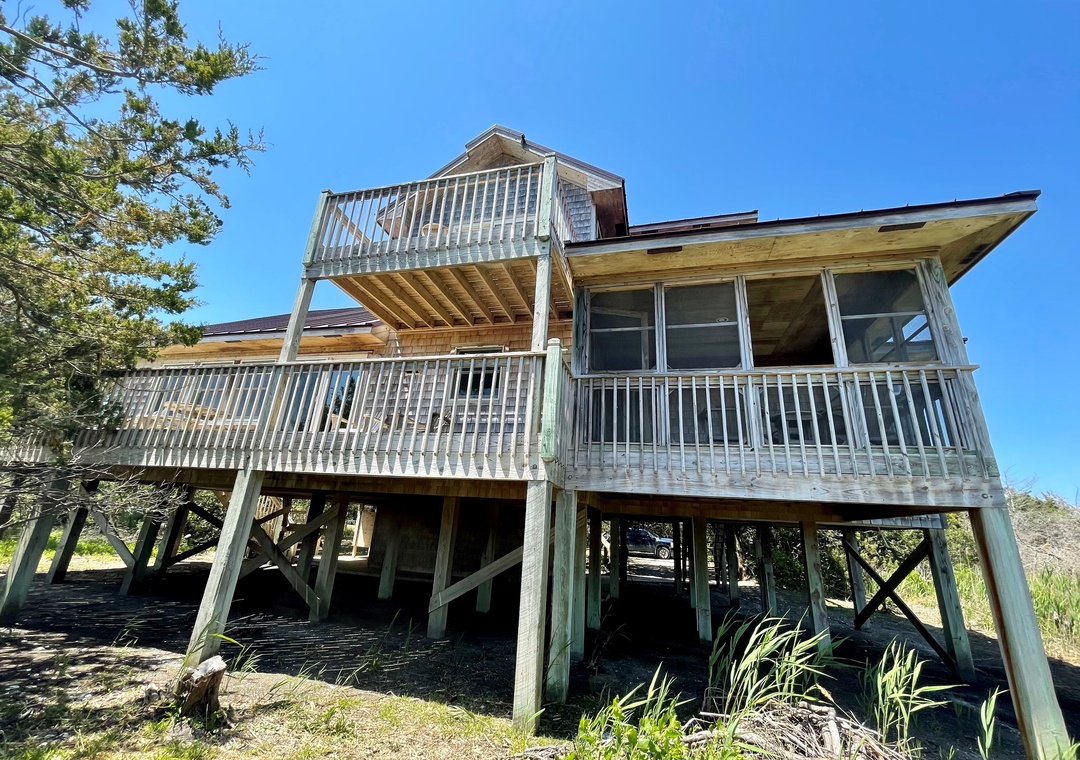 This wonderful Sound Shores home on Ocracoke Island has beautiful sound and marsh views from the second floor deck and cupola. Tastefully decorated and featuring a large open floor plan Saltmeadow is ideal for family gatherings. This home is further complimented by a second floor sitting area and third floor cupola. Generous decks and screened porch complete this island vacation home.