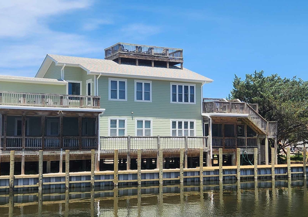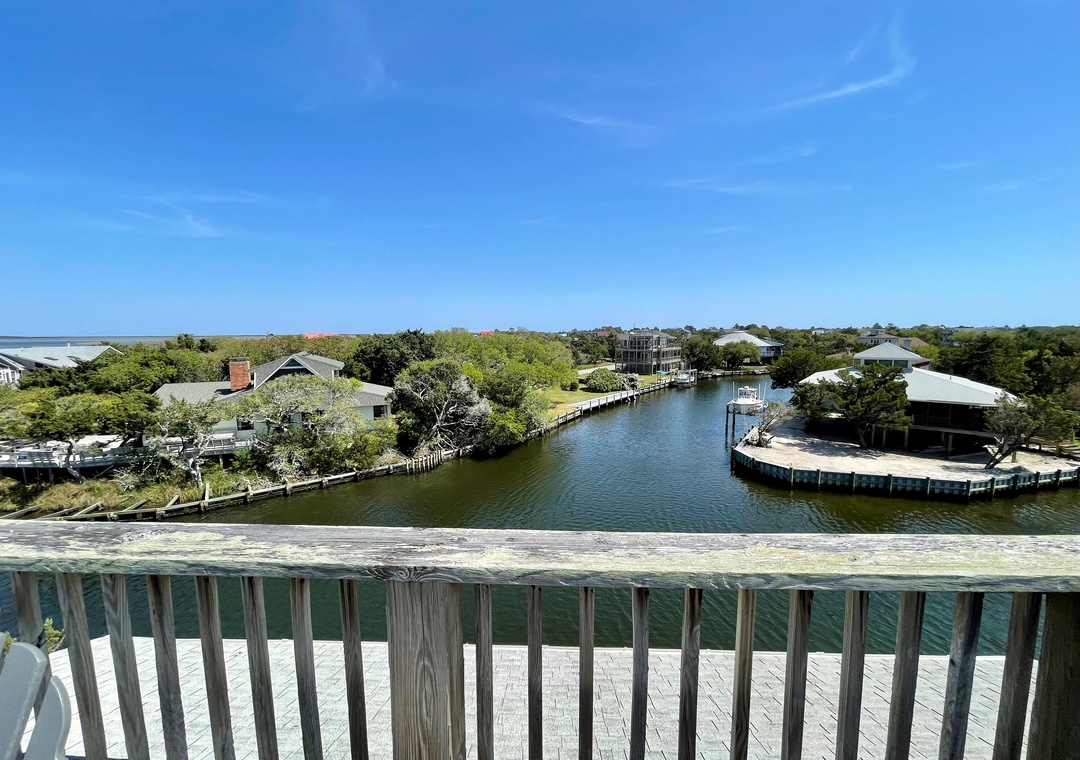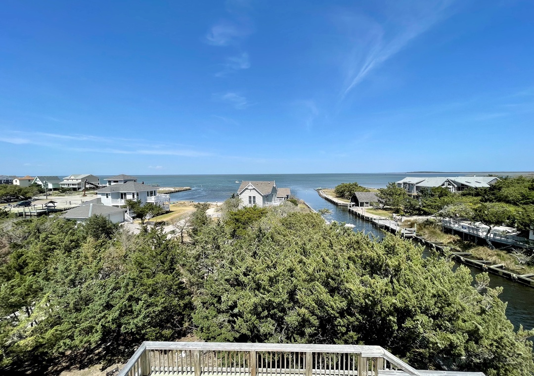 Spread out and relax in this spacious, canal front Sound Shores home on Ocracoke Island. Bring your boat and tie up at your door, enjoy the easy access to Pamlico Sound and great fishing and fun! The many decks and screened porches allow you to enjoy the warm sea breezes and the incredible views that Spindrift has to offer. Relax on the third floor upper deck and take in the amazing panoramic views of Ocracoke and the Pamlico Sound. Contemporary and tastefully decorated in soft pastels with an abundance of interesting artwork.