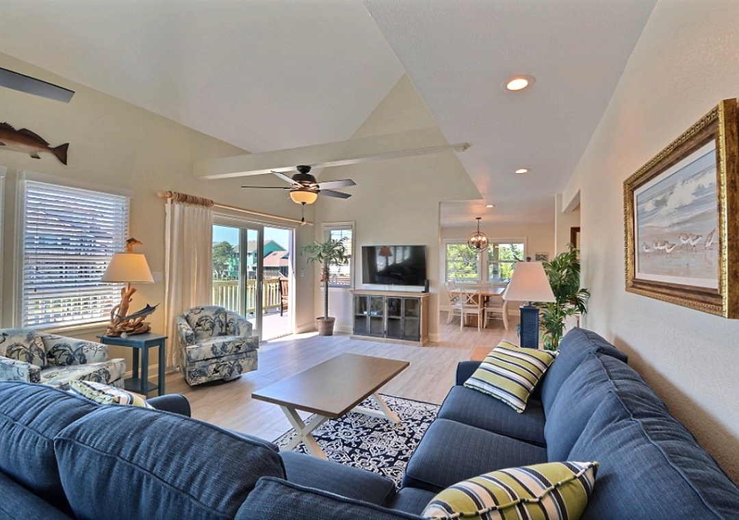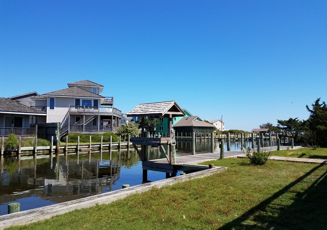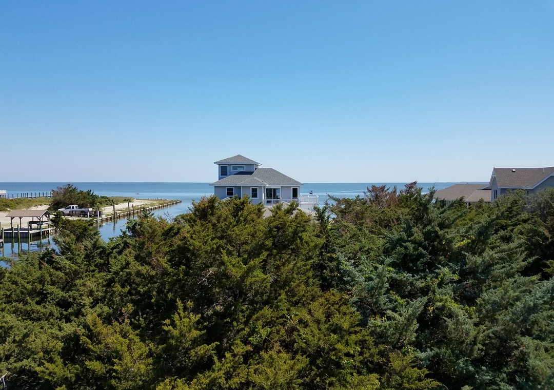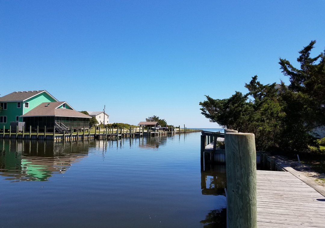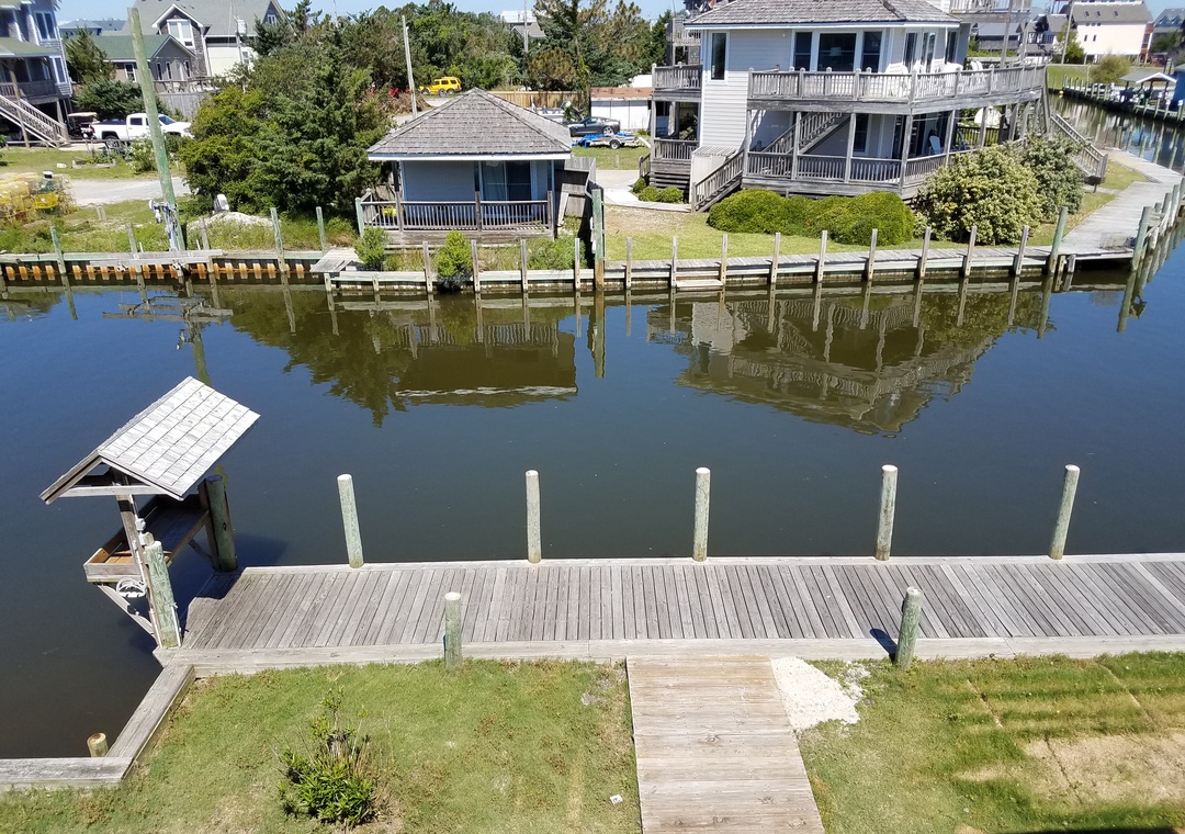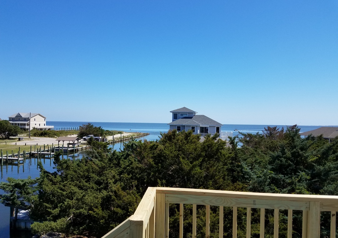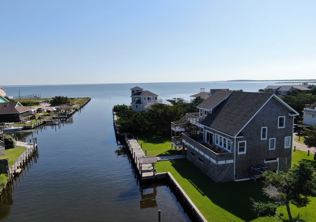 This Ocracoke Island vacation home is named for its soundside breezes and incredible views from its decks. Relax in the *hot tub. Enjoy this welcoming and tastefully furnished and decorated waterfront home featuring cathedral ceilings and an open floorplan. For boaters, this house boasts over 75' of dock with a covered fish cleaning bench on a canal with easy access to Pamlico Sound.