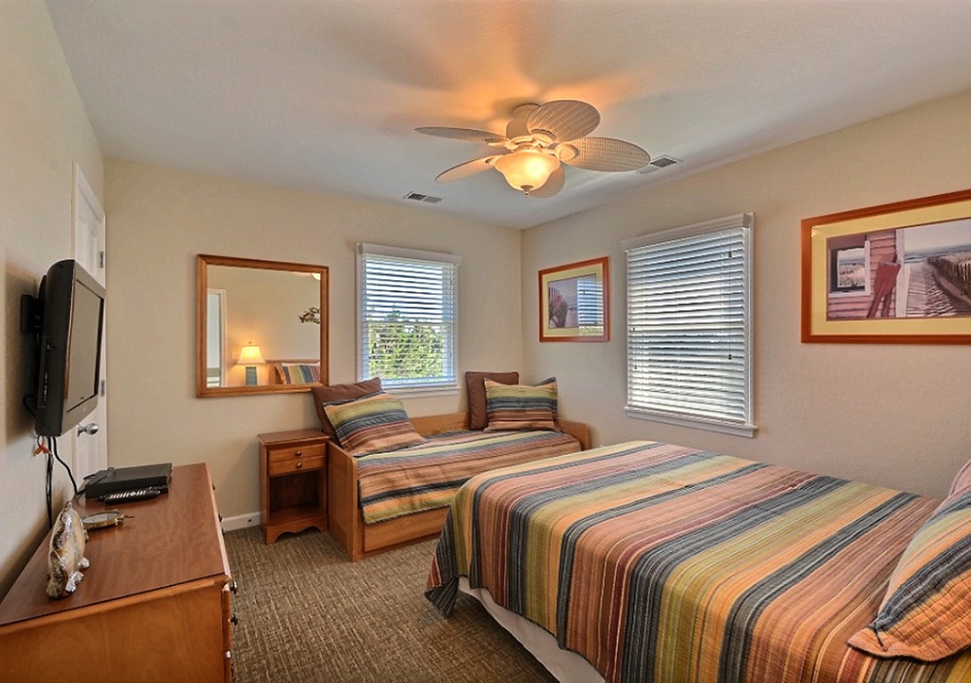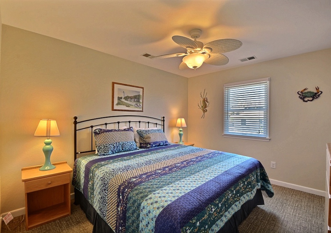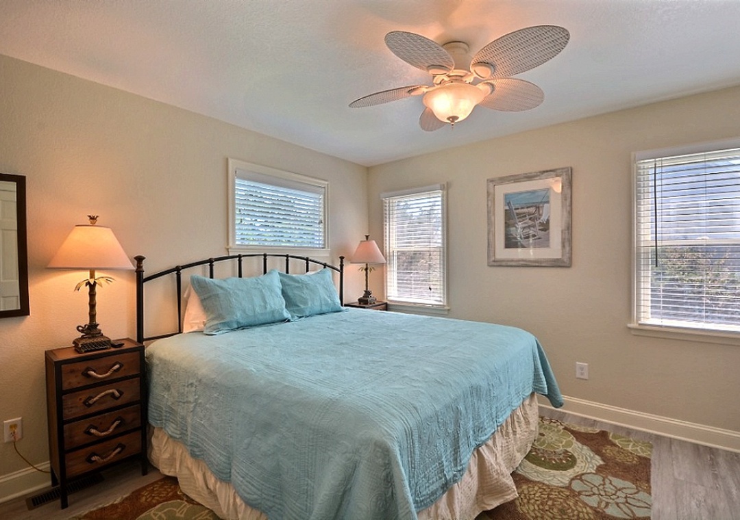 Second Floor: Master Bedroom with King bed and Private Bath with tiled shower. Bedroom with King bed. Bedroom with one Queen and a Daybed (sleeps one person), TV/DVD. Hallway Bath with tub/shower.