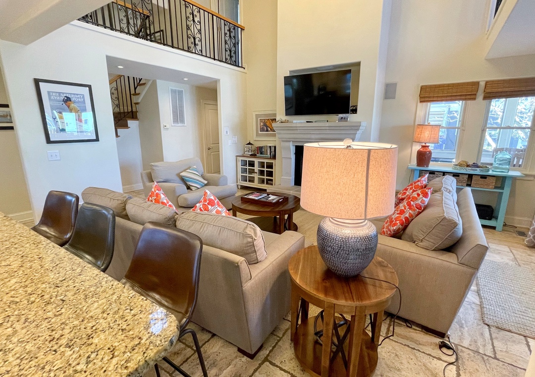 Amenities include central air conditioning/heat, ceiling fans, complimentary wireless internet access, 3 cable TVs. The kitchen offers granite counter tops, dishwasher, microwave and wine refrigerator. Gas fireplace (off-season only). Washer and dryer.