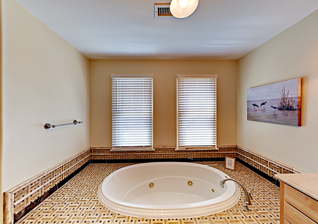 4 Bedrooms. 4.5 Baths. Three Primary Bedrooms: 2 with King, and 1 with Queen. One additional bedroom with Queen. Each Primary Bathroom offers a soaking tub (no jets).