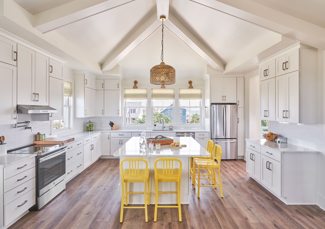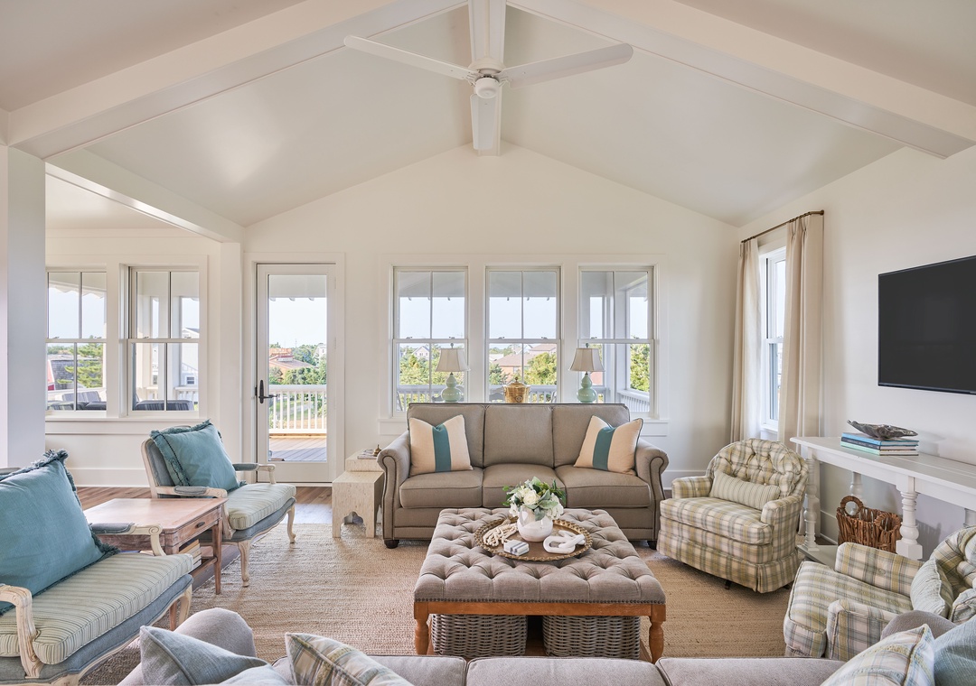 The Island House boosts a reverse floorplan to capture canal and distant sound views that surround Oyster Creek. Architecturally minded features such as Age in Place Living with elevator access to all floors, thoughtful wide doorways, and other designs invite generations to enjoy.