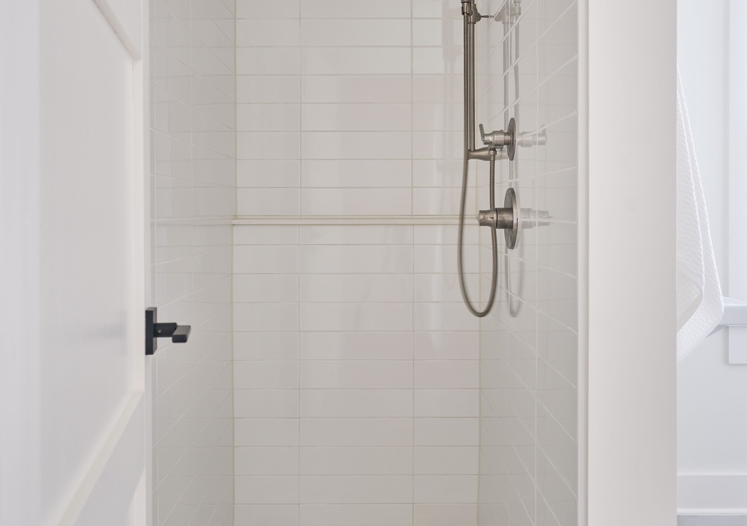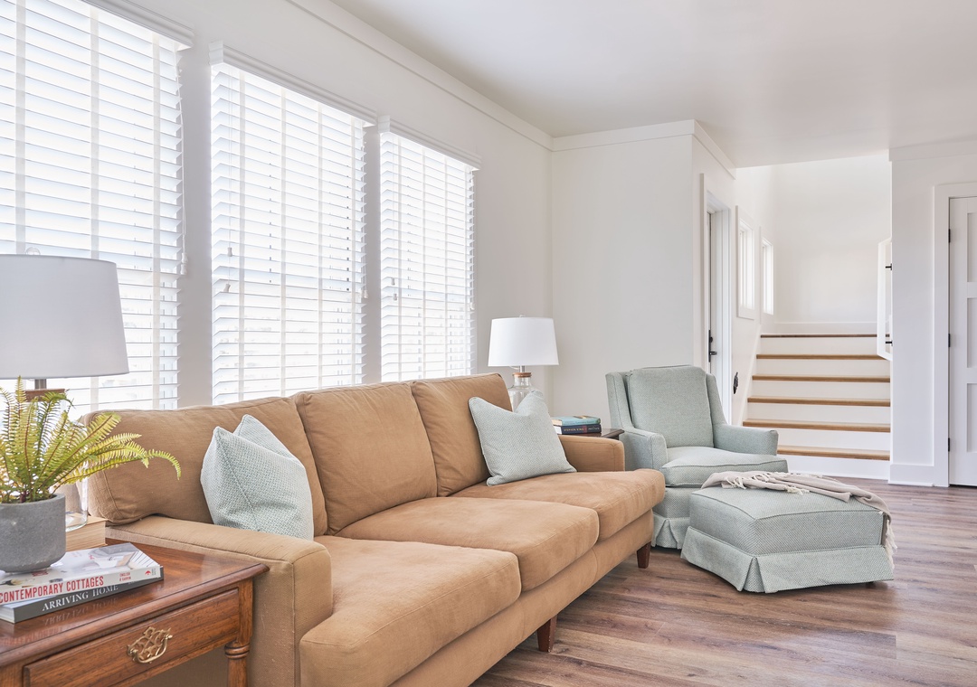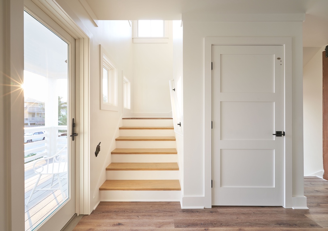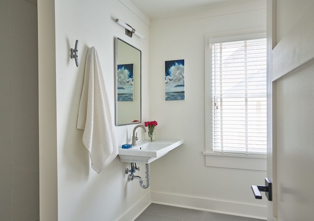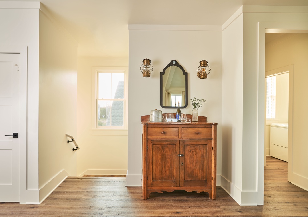 The ground-level access welcomes guests with a lime washed herringbone brick floor – the perfect space for unloading after your beach excursions.