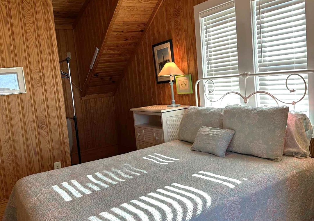 First Floor: Two Bedrooms with Queens, Living Room and Kitchen. Bath with tiled shower.