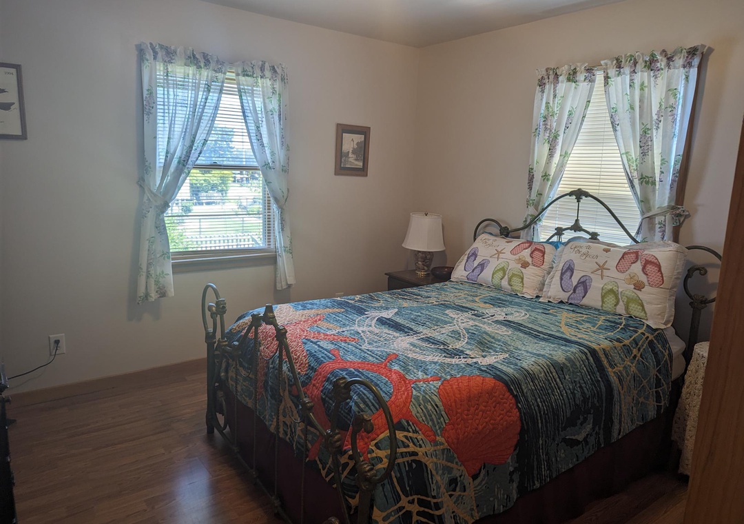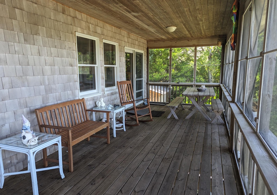 Outdoor amenities include a screened porch, an enclosed yard, and an enclosed hot and cold outdoor shower for rinsing off after the beach. A fish cleaning bench and picnic table are located near the canal, and boat docking is available.