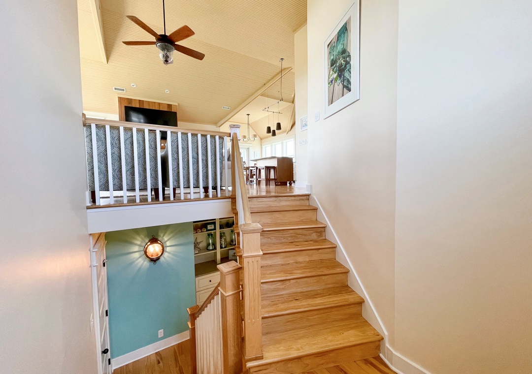 After spending a day in the sun, family and friends will enjoy gathering in the second floor living area featuring an open floor plan with cathedral ceilings or enjoy a pleasant Ocracoke evening on the outdoor decks and porches.