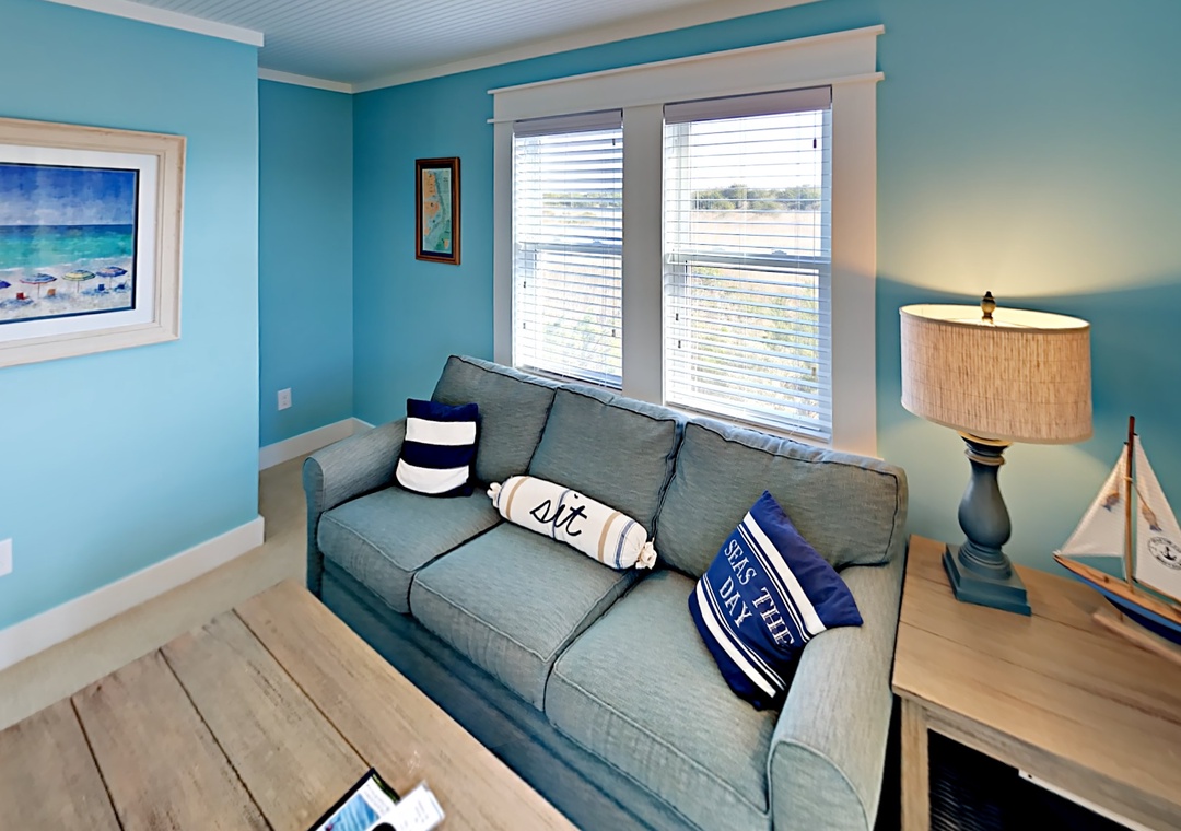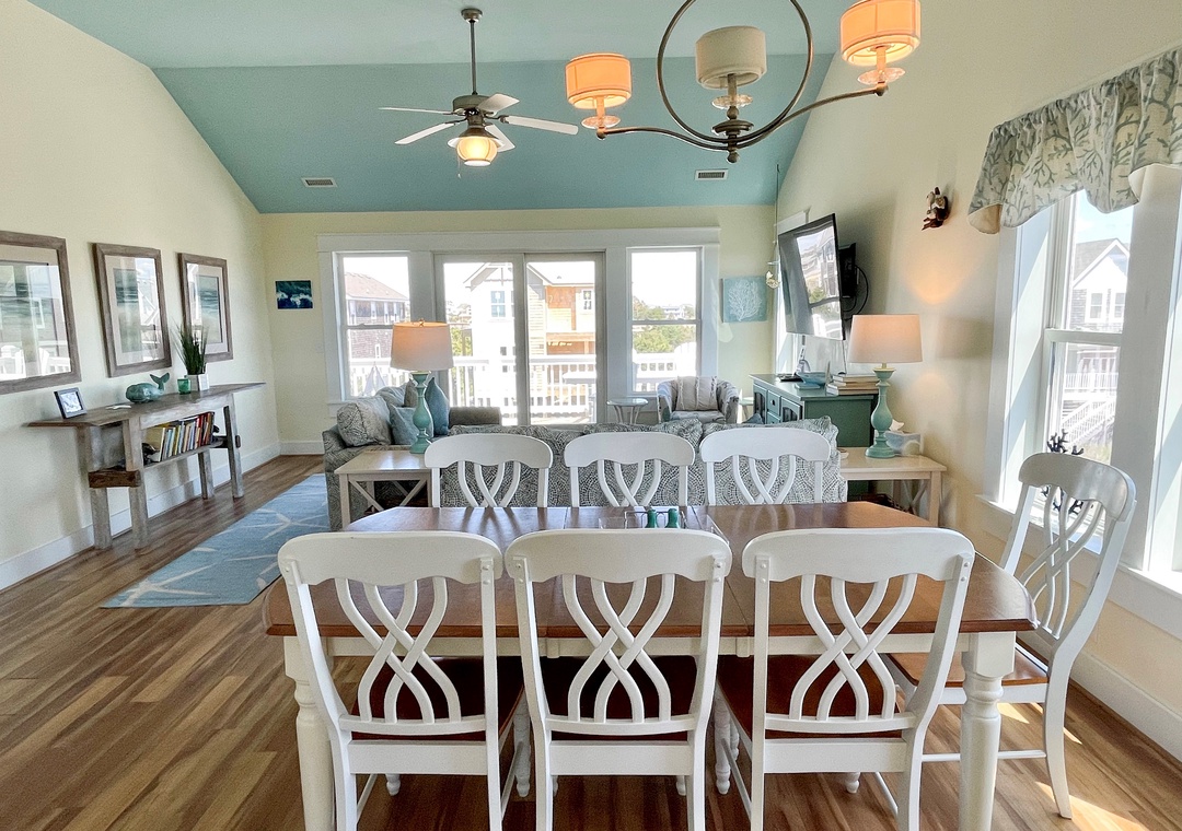 Designed with a reverse floor plan. The spacious second floor offers an open floor plan with cathedral ceilings, perfect to enjoying your Ocracoke vacation.