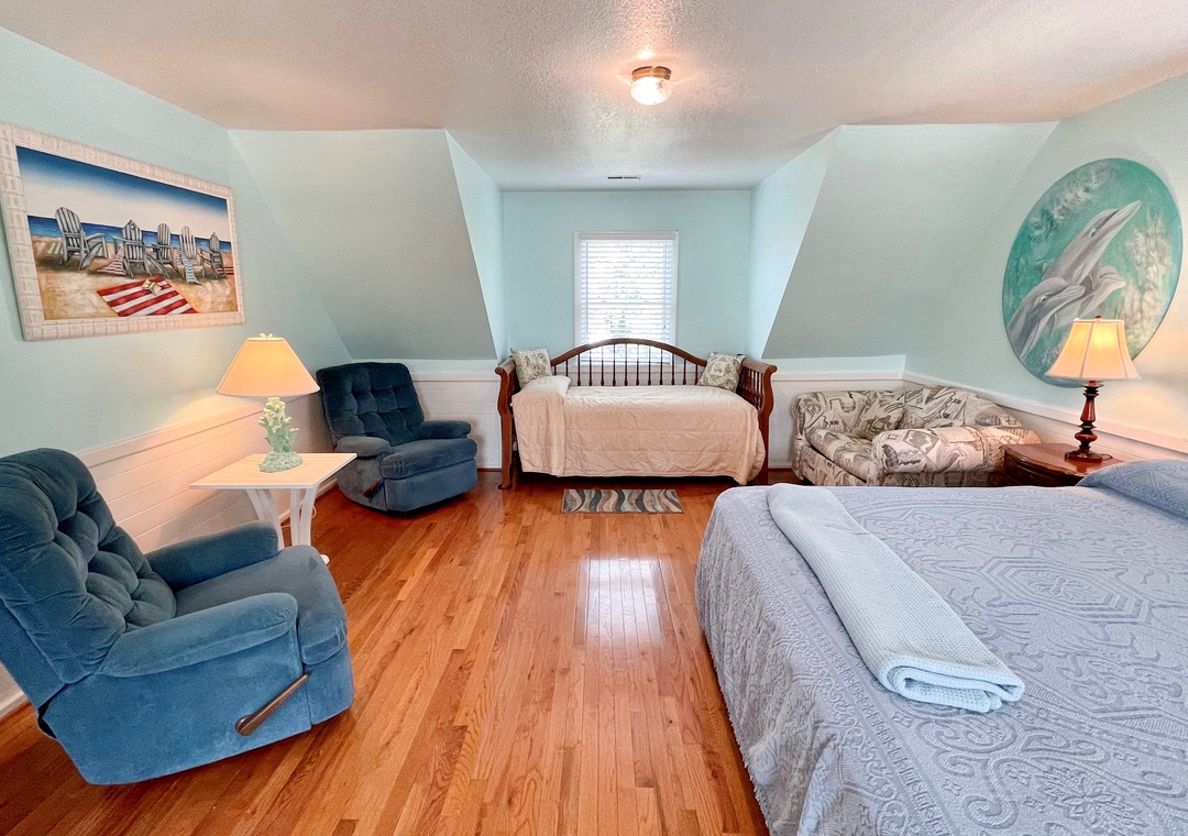 Enjoy this popular, spacious pet friendly Ocracoke Island home. Rest and relaxation will be part of your Ocracoke vacation in this tranquil setting. Recovery Room offers unusually large rooms that are a favorite with vacationing families. The large eat-in kitchen is ideal for preparing those memorable vacation meals. The interior and exterior spaces are wonderful for family gatherings, socializing or simply relaxing. Retreat to the private screened porch or rock on the covered front porch.