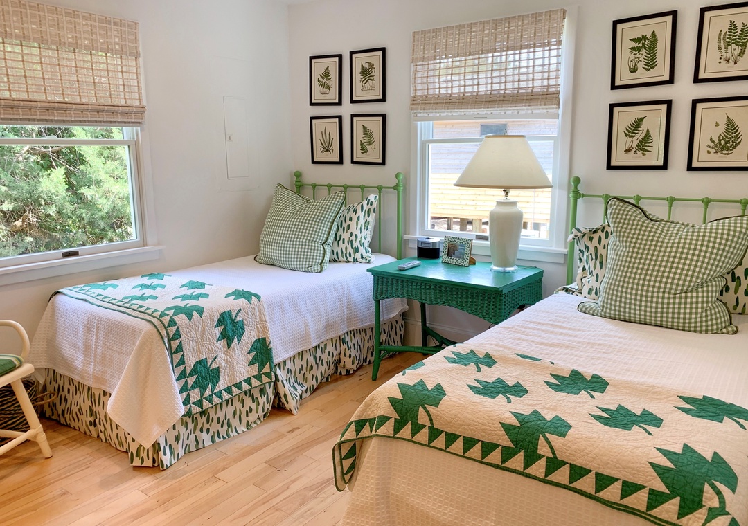 3 Bedrooms, 2 Baths: 2 with Queens, 1 with two Twins. Bathrooms have shower only.