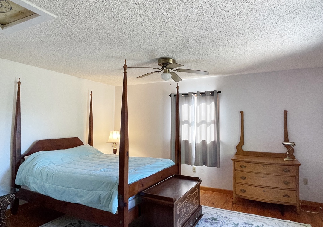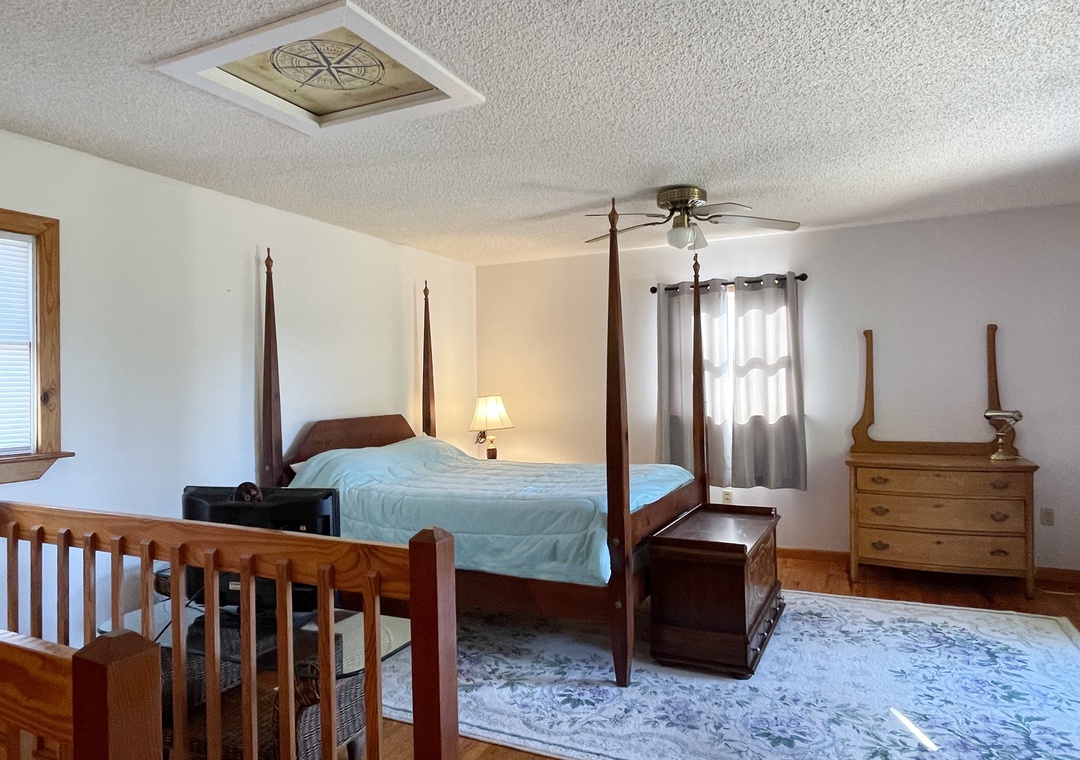 Second Floor: Bedroom with Queen Bed, TV. Bathroom with shower.