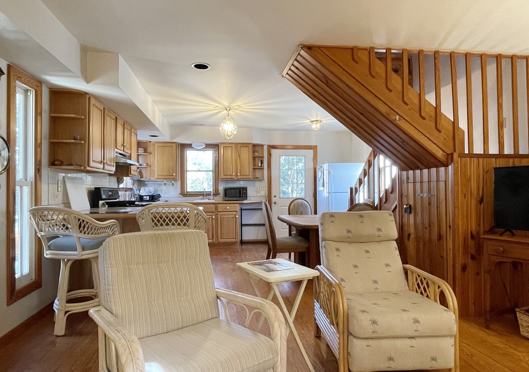 This home offers an open floor plan on the first floor combining the living, dining area, and kitchen. The second floor offers a sleeping area with Queen bed and bathroom with shower.