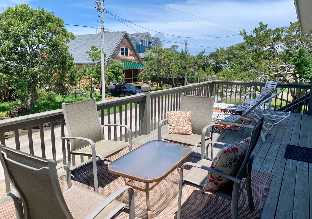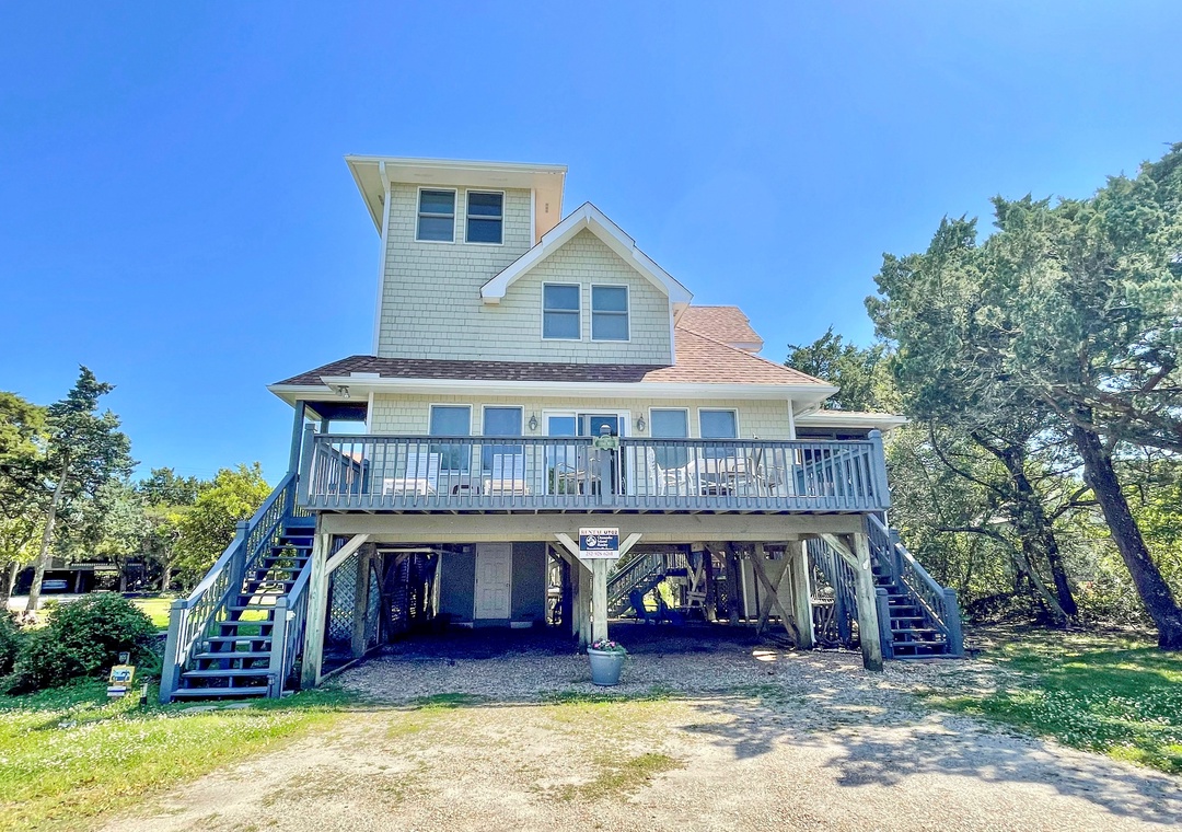 This well maintained Ocracoke Island vacation home is popular for its various and spacious decking and wonderful screened porch. The bright and open floor plan, complimented by a well equipped kitchen, is wonderful for family gatherings. A third floor tower room offers a distant sound view.