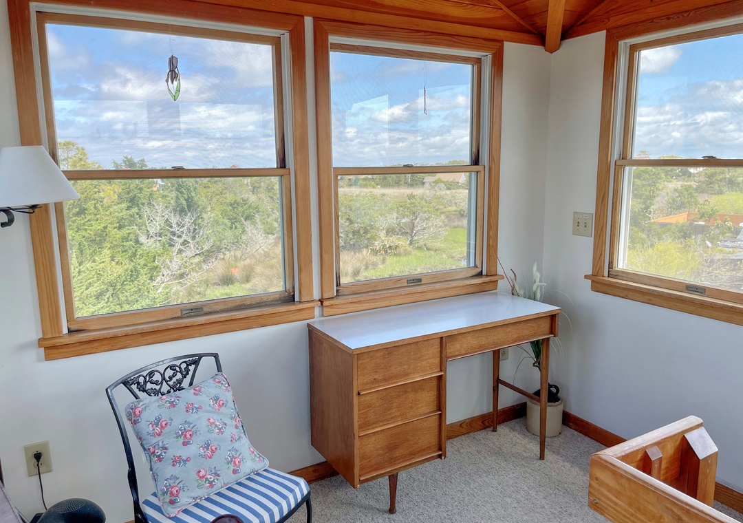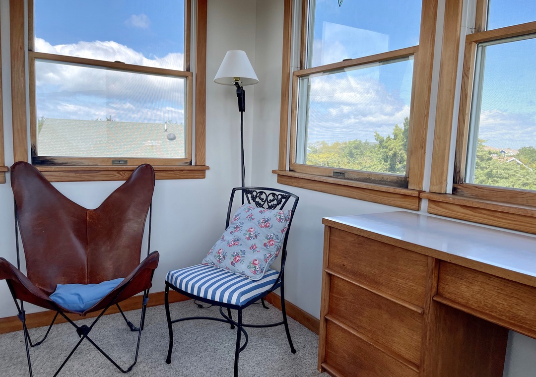 Third Floor: Loft with seating and desk.