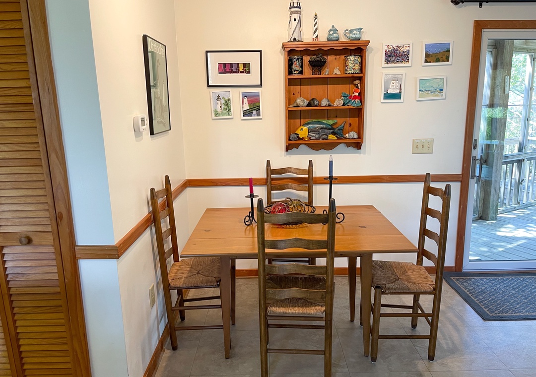 This 2 bedroom vacation home on Ocracoke Island offers two screened porches, one covered porch, and a sundeck. Retreat to the cupola to enjoy marsh and distant sound views. Tucked among the trees and overlooking the marsh, Xenia House offers a wonderful private vacation setting. Featuring a fully equipped kitchen and relaxing casual island decor this home is sure to provide wonderful vacation memories.