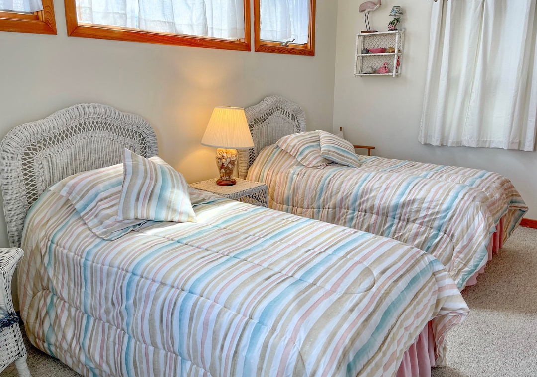 2 Bedrooms, 1.5 Baths: 1 with Queen, 1 with two Twins.