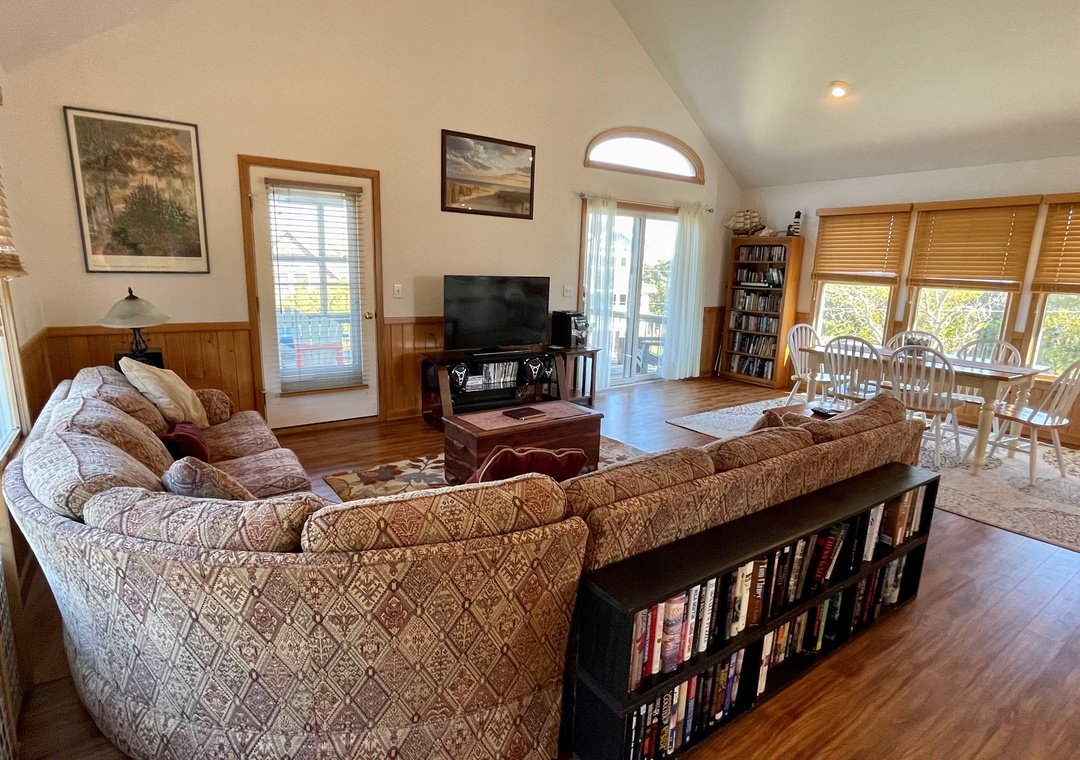Within easy walking distance to the coffee shop and more. Sunset on Trent features a reverse floor plan with three bedrooms on the lower level. Comfortable and well equipped, this house feels like home. Several decks and furnished porches offer inviting spaces to lounge, entertain friends and family or enjoy al fresco dining. The large kitchen can easily accommodate several cooks, or make lounging an art form in front of one of the large TVs.