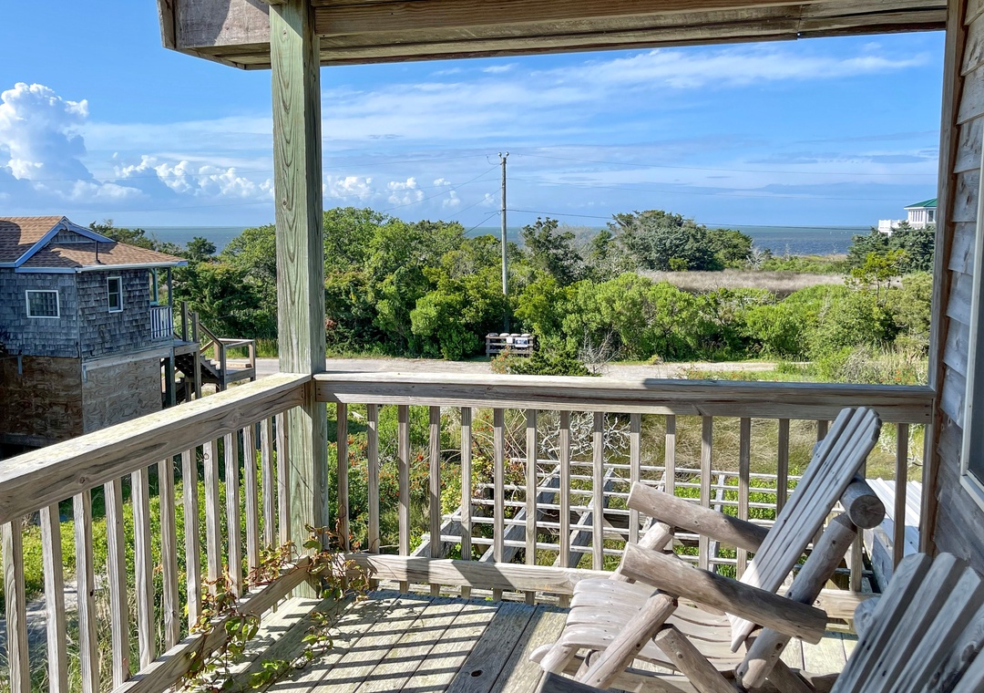 This peacefully decorated Ocracoke Island vacation home invites you to relax at this comfortable home on a private lane. The home offers stunning marsh views and distant sound views from an upstairs sitting area and porches.