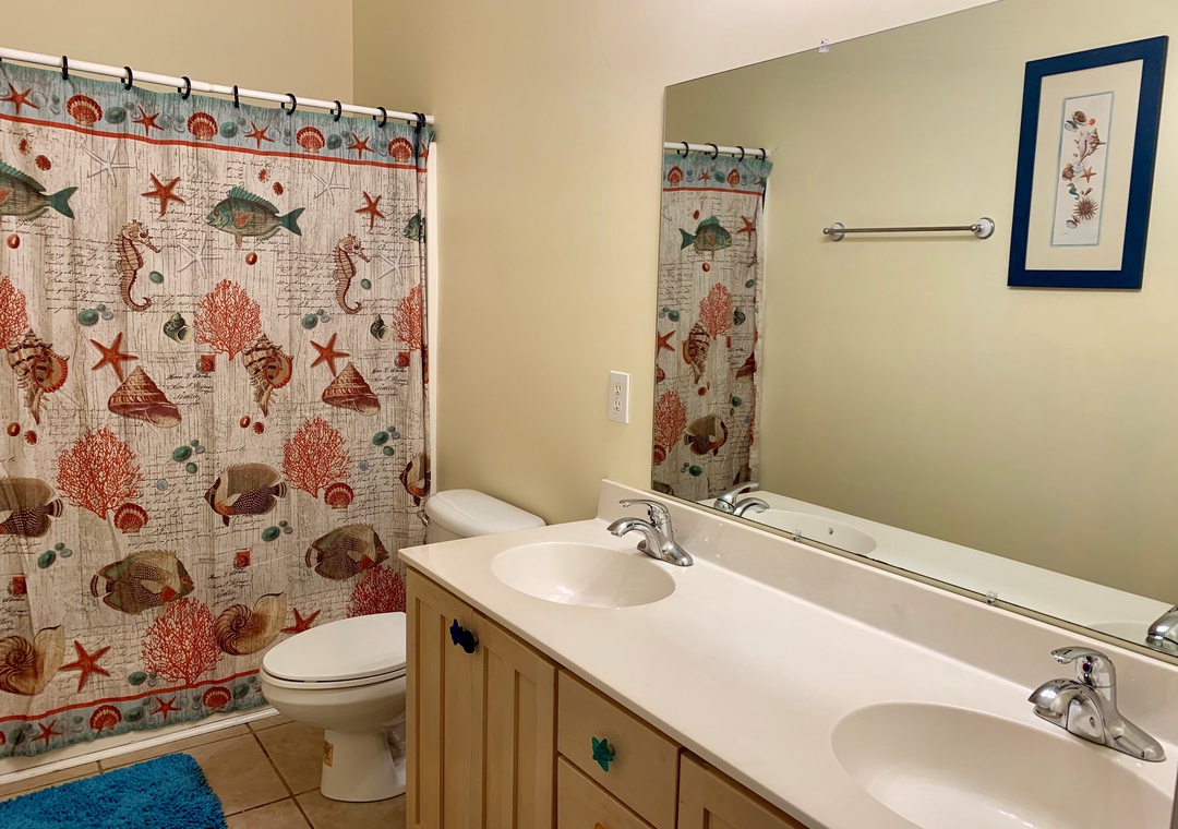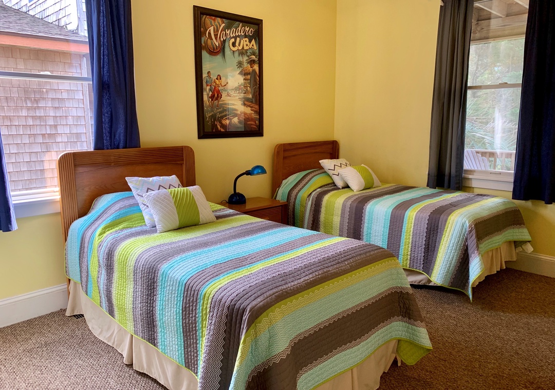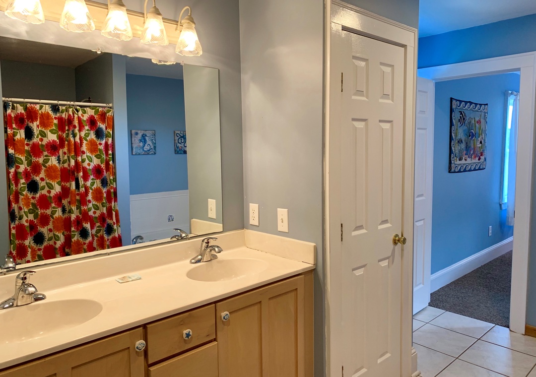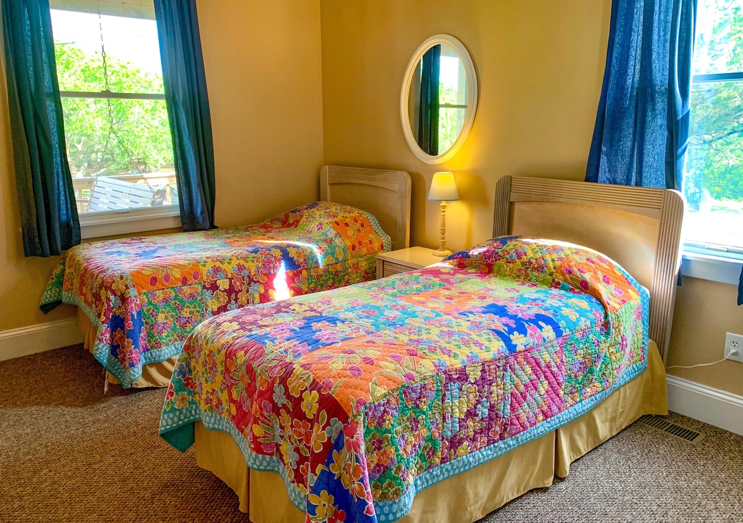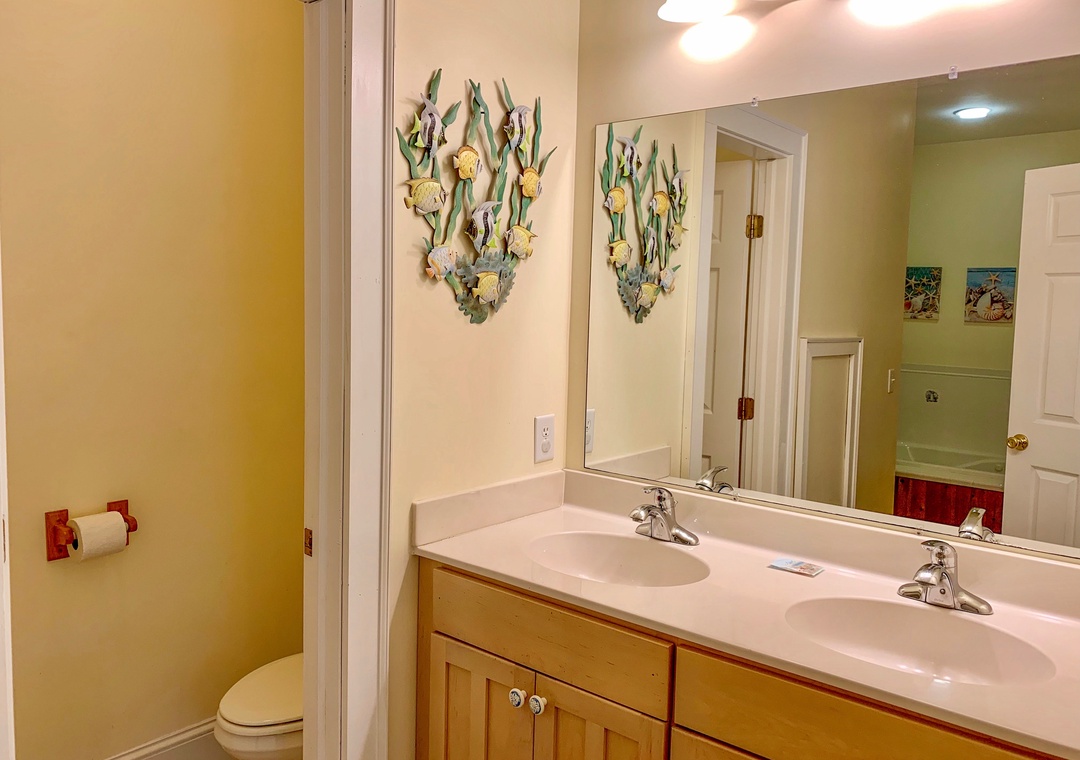4 bedrooms, 3.5 Baths: Primary Bedroom with King, Primary Bedroom with Queen, and 2 bedrooms with two Twin beds. Primary bathrooms include whirlpool tub and separate shower.
