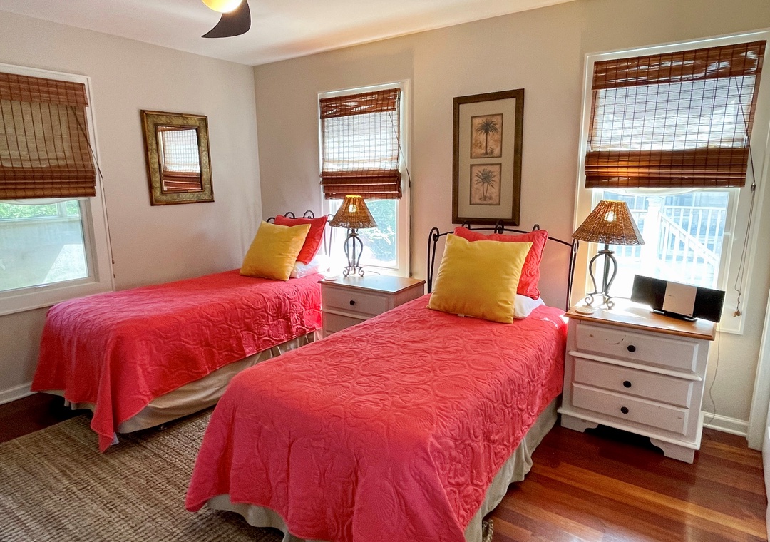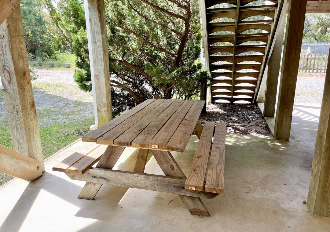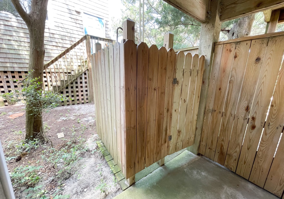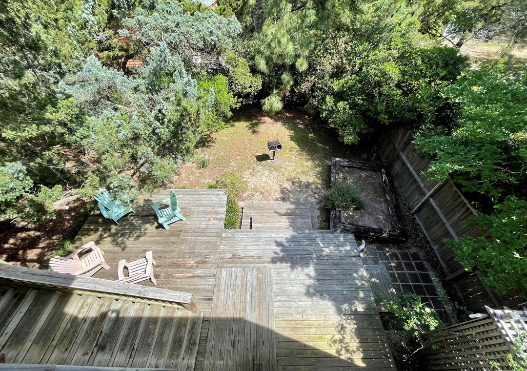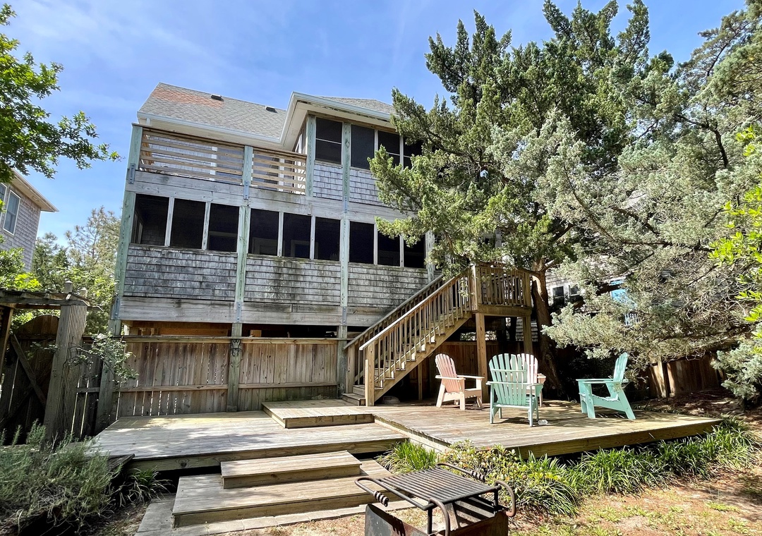 Two screened porches are open and airy in warm weather, yet protected from cool breezes in the off-season. Additional open porch on second floor is the ideal spot for reading a novel, taking a nap, or watching the stars. A large yard with privacy fence and park style charcoal grill is perfect for picnics or relaxing after a day at the beach.