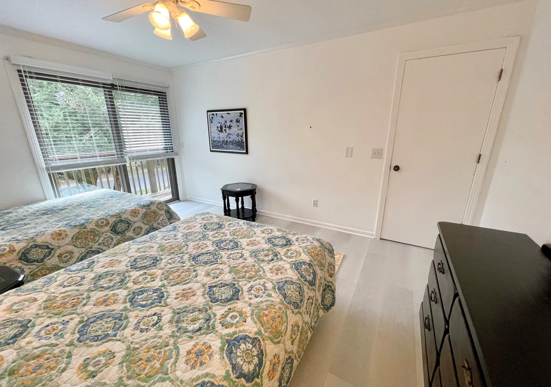 2 bedrooms, 2 Baths: 1 with King, Twin Bed, and tiled shower. 1 with two Double Beds. Bath in Hall with tiled shower.