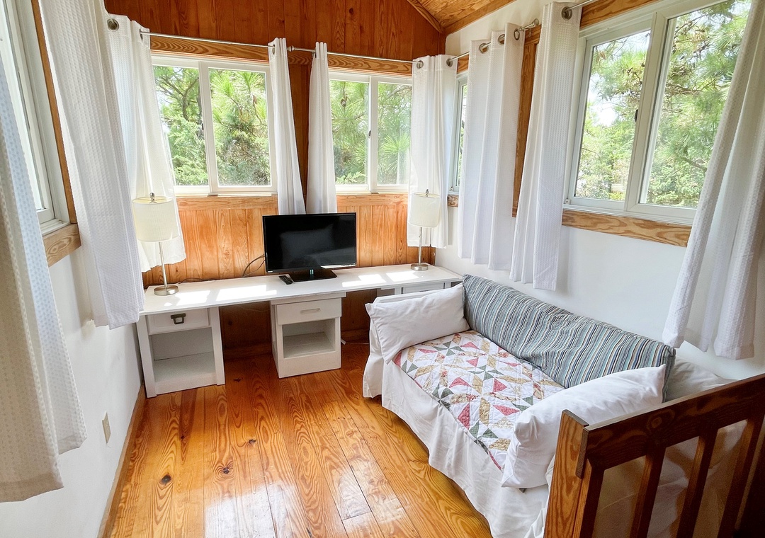 Some of our guests liken Piper Green to being in a treehouse, enjoying the unique seclusion and generous windows with lots of natural light in the living area.