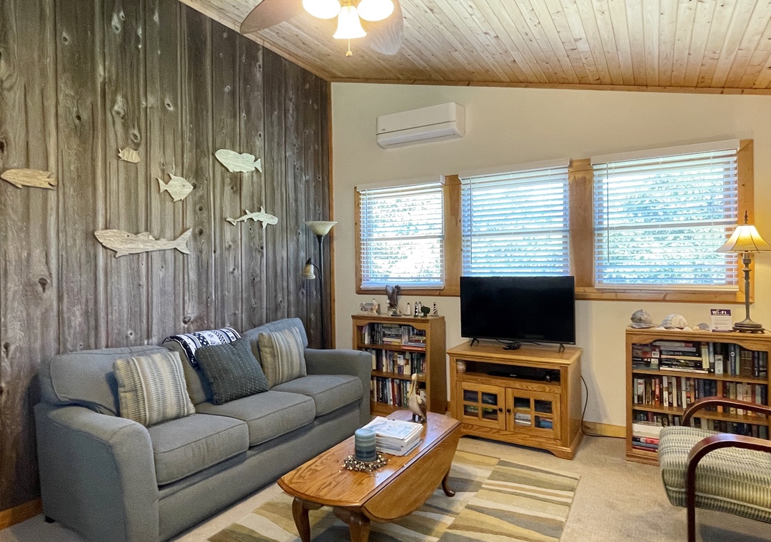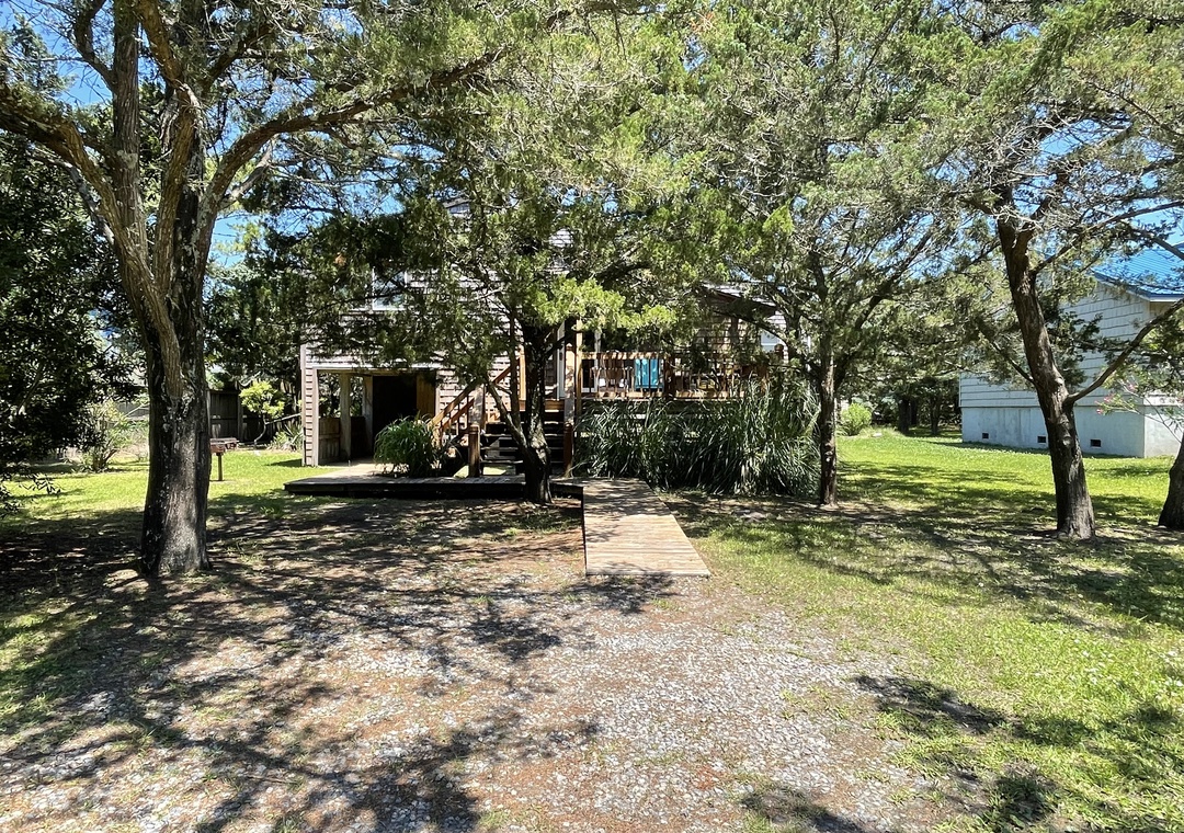 Comfortable Ocracoke Island cottage located in a quiet residential setting with canal access at the end of the road, perfect for kayaking. Enjoy the convenience of a first floor living area and second floor TV room. Comfortable and private with a large back yard.