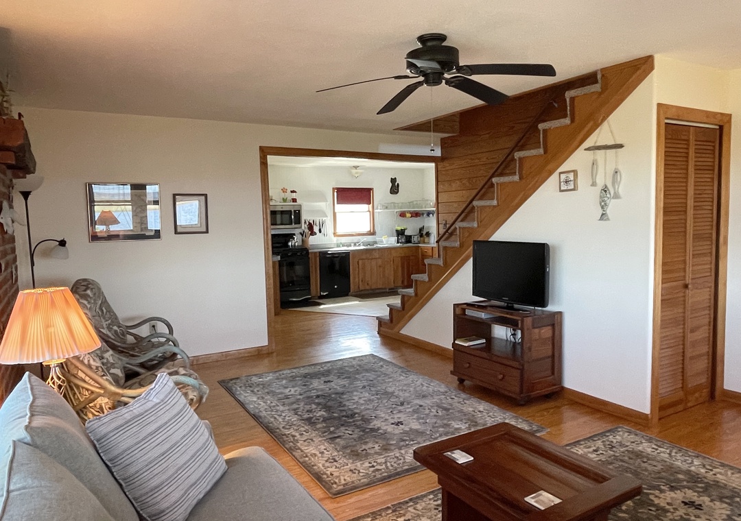 First Floor: Living Room with TV, Dining Room and Kitchen. Bedroom with Queen bed. Bath with tub/shower. Laundry Room.