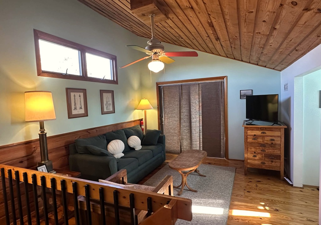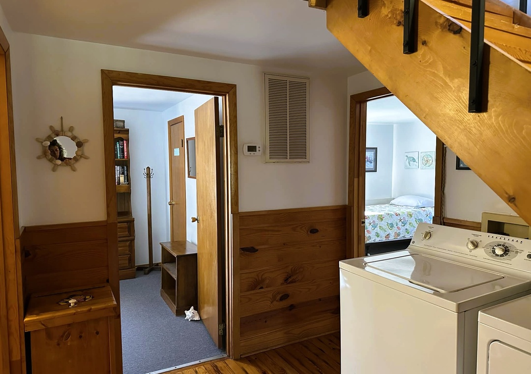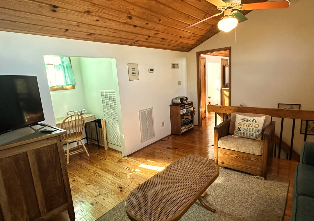 Second Floor: Den with Queen Sleeper Sofa, TV. Bedroom with Double bed. Half Bath.