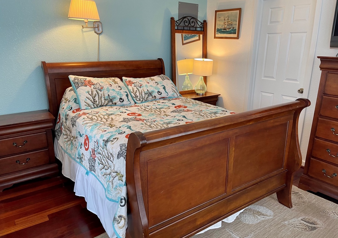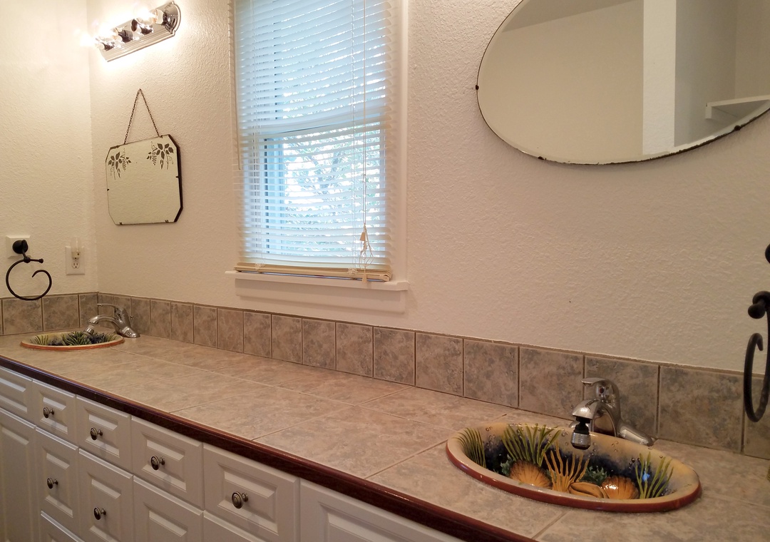 Amenities include central air conditioning/heat, ceiling fans, complimentary wireless internet access, and 5 satellite TVs (including a 47 inch Smart TV in the living area). Whirlpool tub. Washer and dryer.