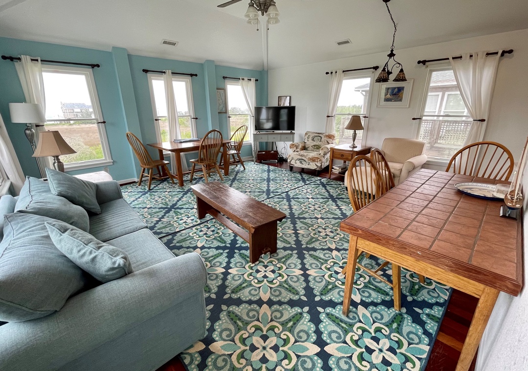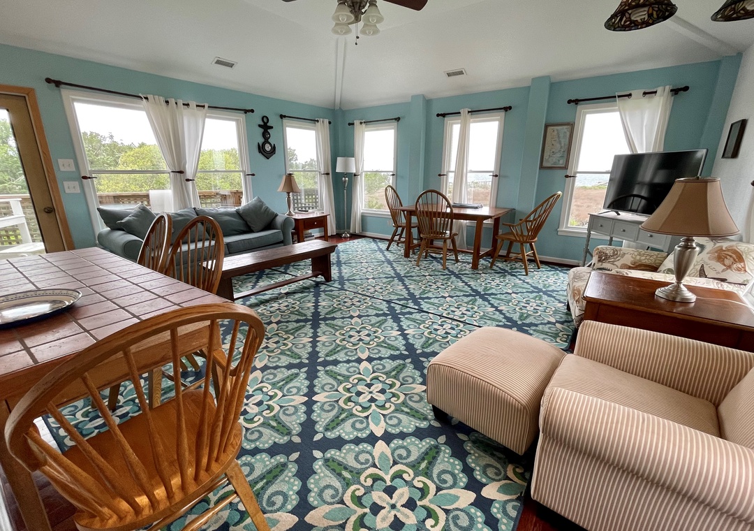 Ms. Joy Bell offers all the comforts of home. Enjoy some family time in the spacious great room or gather on the decks for some awesome views of the sound. Venture out and shop in our stores, dine in some of our favorite local restaurants, explore the Ocracoke Lighthouse, visit a historical site, or try a water sport you have never experienced before.