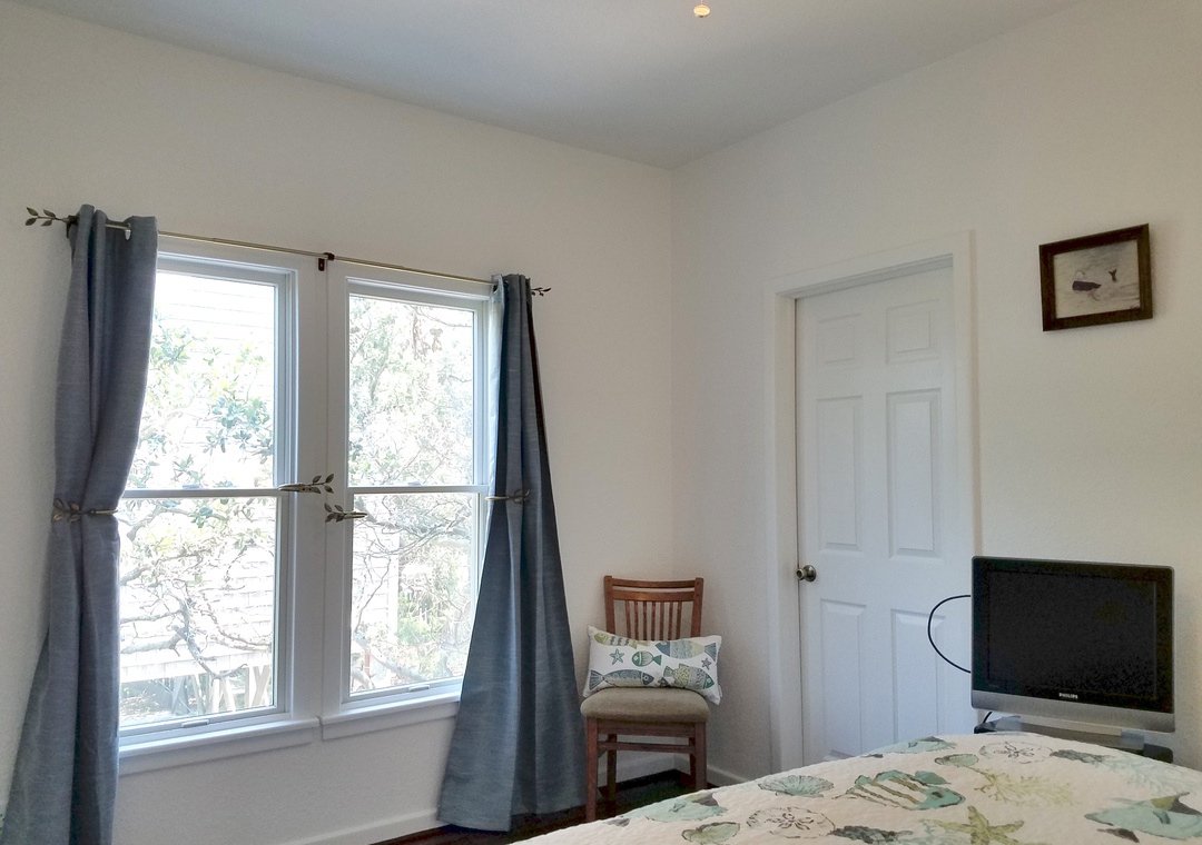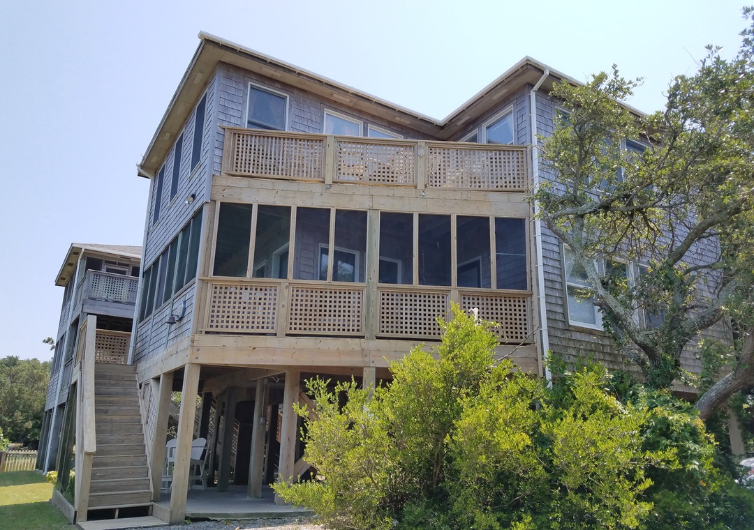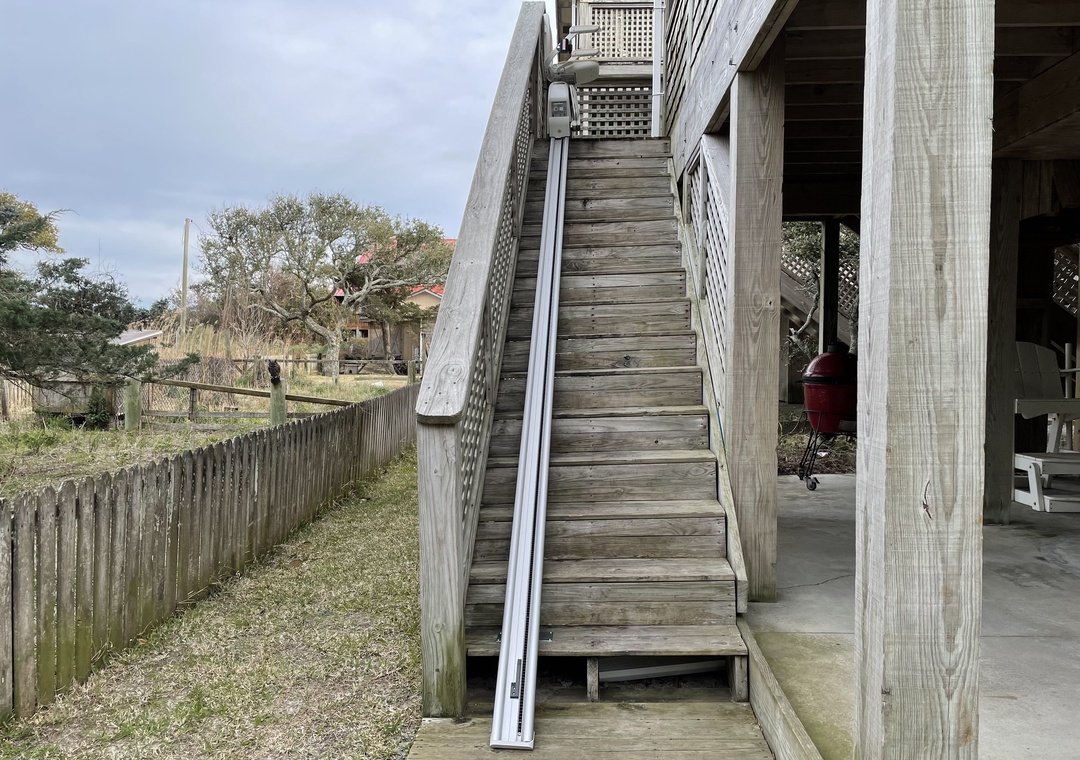 This was our second year at Ms Joy Bell, after 6 or 7 years next door at the Daydreamer. Best views on Ocracoke. Pet friendly. When we arrived, the inside Acorn Stairlift was stuck on the floor, blocking access to the bedroom. OIR responded quickly and the repairman fixed it in an hour. (Puzzle pieces jammed in the base) Half of the house's rain gutters have been missing for, several years. When it rains, a waterfall comes down over the only exit door in the house. Rain has damaged the door that exits from the 1st floor bedroom to the deck. The door frame is rotted. The hinges are falling out and the door cannot be safely opened. The first floor bedrooms have mattresses that need to be replaced. They collapse in the middle after half an hour sleeping on them. Very uncomfortable. A few other minor issues, but, otherwise, we have enjoyed our stay. We're moving on to another house next year.- Reviewed On: 6/25/2024