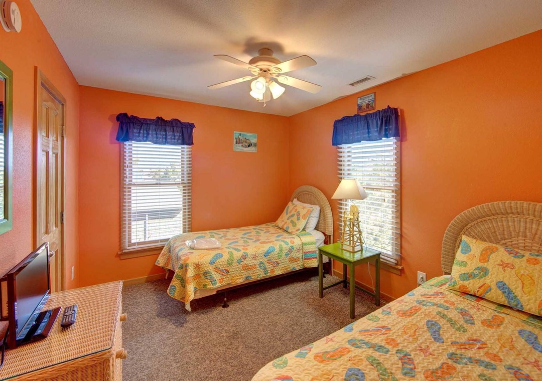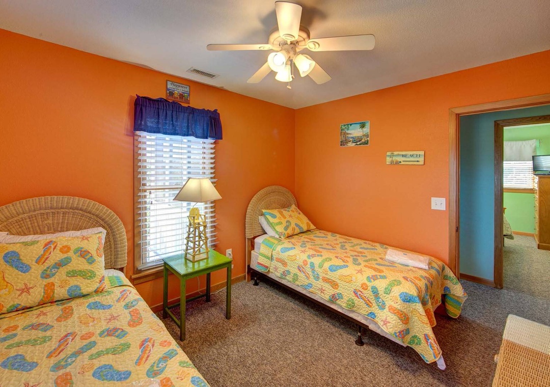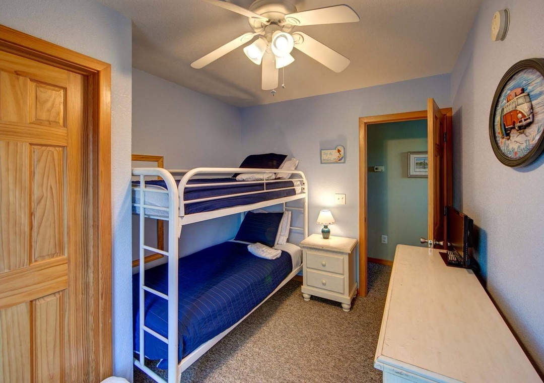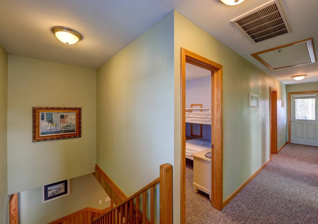 Upper Level: Bedroom w/ King and Private Bath | Bedroom w/ Queen | Bedroom w/ 2 Twins | Bedroom w/ Bunkbed | Full Jack-and-Jill Bath shared with Twin and Bunk Bedrooms