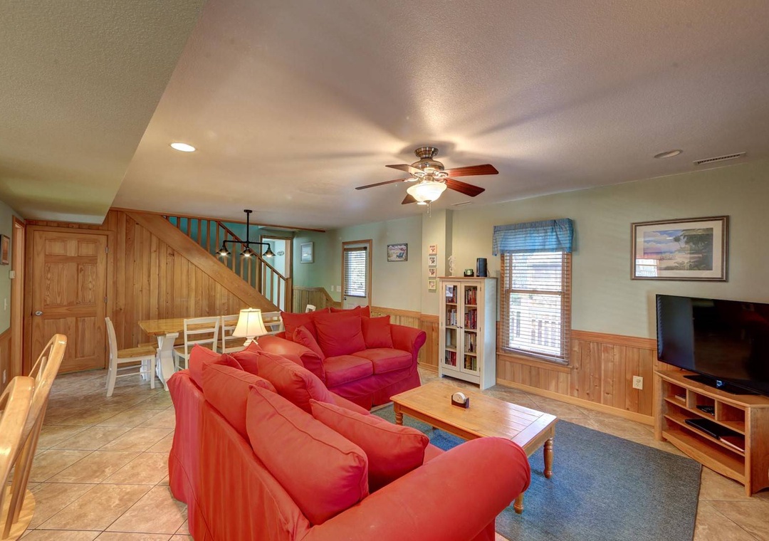 Main Level: Living Area | Dining Area | Kitchen | Rec Room | Bedroom w/ Queen | Full Hall Bath | Laundry Area