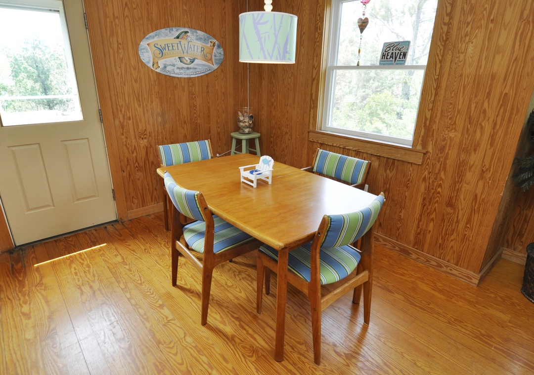 Welcome to 'Blue Heaven.' This charming cottage is located at the end of a quiet lane in a secluded residential area of Ocracoke Island. Blue Heaven features an open floor plan with dining table for four to six guests and bar seating for two. Relax on a deck off of either the dining area or kitchen. Retreat to the lookout deck. French doors in the living area enter onto a screened porch.