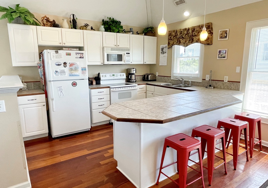 Amenities include central air conditioning/heat, ceiling fans, complimentary wireless internet access, and 3 cable TVs. Workstation offering 18" monitor, keyboard and mouse (wired) and a powerstrip. Washer and dryer. Pack-N-Play.