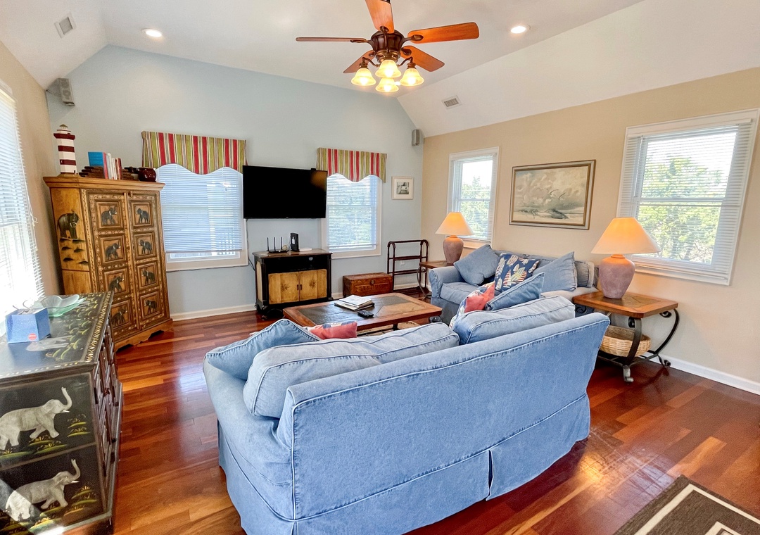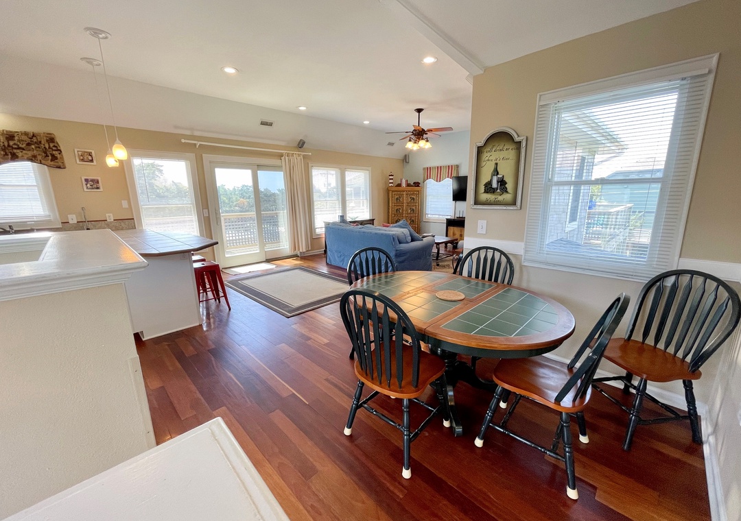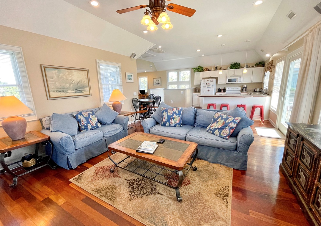 Relax and enjoy Doc's Holiday for a fabulous Ocracoke vacation. This comfortable reverse floorplan home is tastefully decorated and well appointed. Conveniently located, just a short walk or bike ride to the coffee shop, the library and several local shops and restaurants.