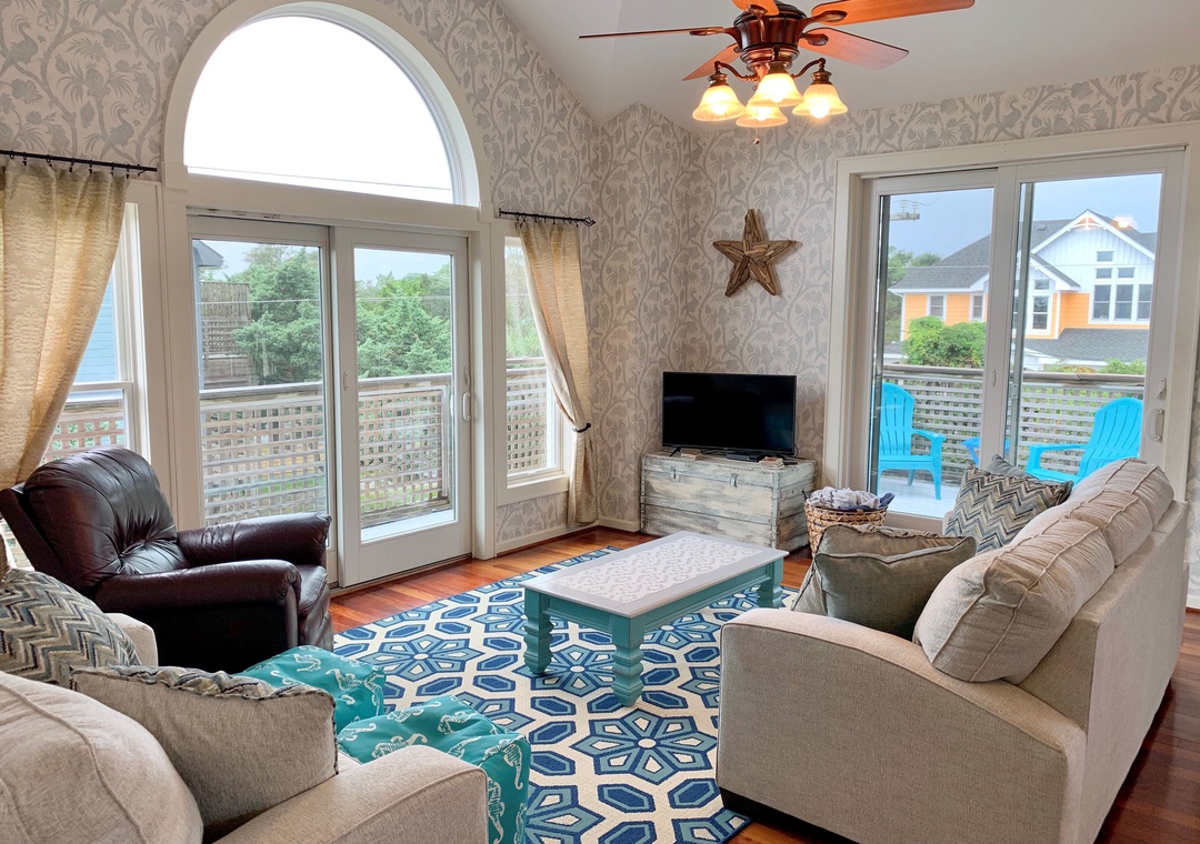 Relax and enjoy Mermaid Manor, a spacious and conveniently located reverse living vacation home on Ocracoke Island. Enjoy the many decks and screened porches that offer a variety of outdoor living space.