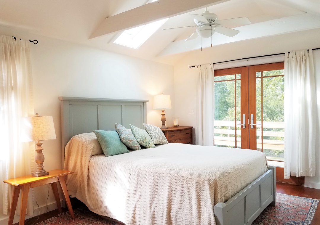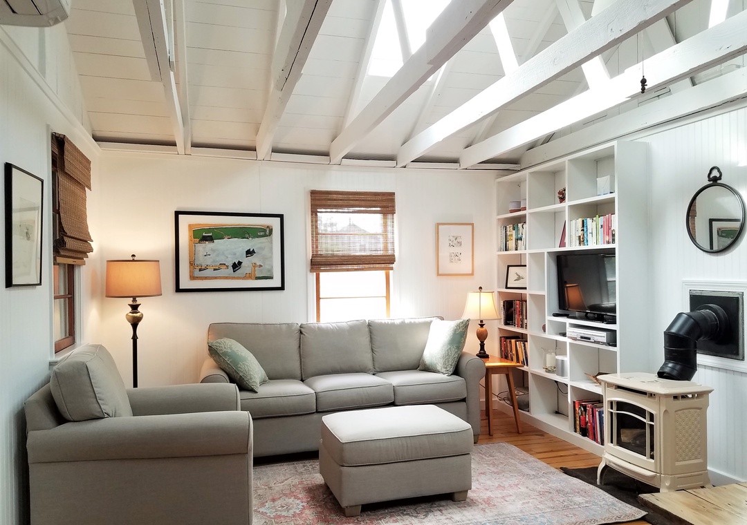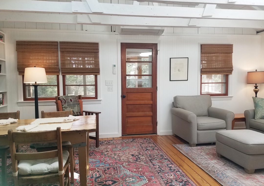 Amenities include central heat and air conditioning (mini split system), ceiling fans, complimentary wireless internet access, cable TV. Gas fireplace (Off-Season Only). Washer and dryer.