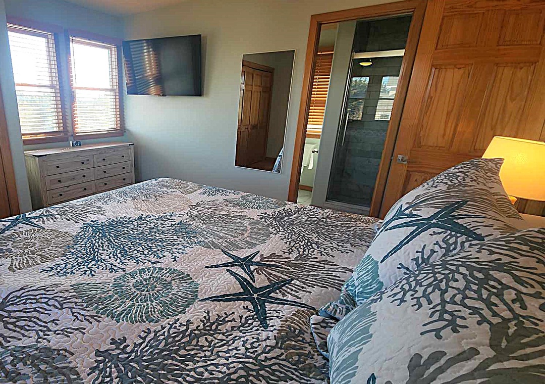 First Floor: Bedroom with King, Bedroom with Queen, Bedroom with Two Twins, Office Are with Desk, Full Bath with Shower and Tub, Washer/Dryer, Deck Access
