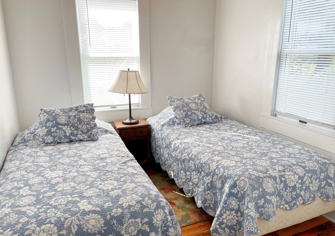 2 bedrooms, 1 Bath: 1 with Queen, 1 with two Twins. The bath offers a tub/shower.