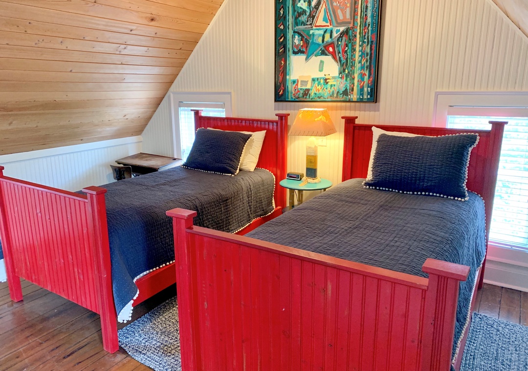 Second Floor: Bedroom with Queen bed. Bedroom with two Twin beds. Bath with shower.