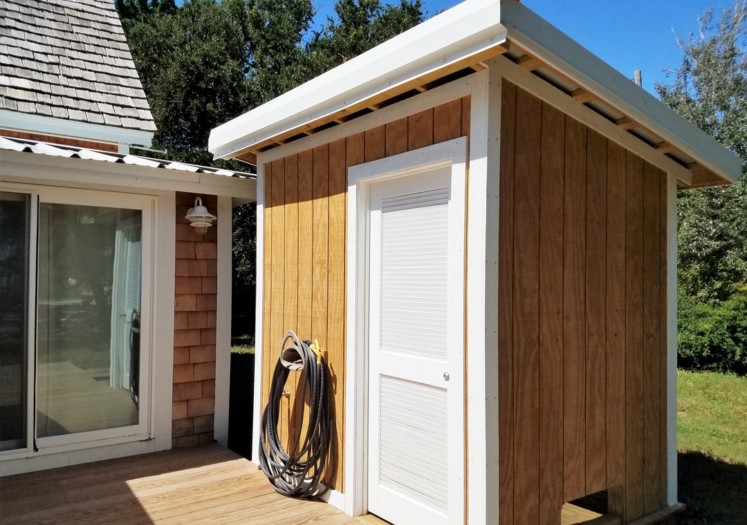 The exterior offers shared boat dockage on Silver Lake Harbor with 50 AMP Electric Service, water and fish cleaning bench. Covered porch and ground level deck, hot/cold outdoor shower, shared park style charcoal grill along with a gas grill which is available to both Bragg-Tolson House and the neighboring Pelican's Landing (Formerly Sea Moor Lake) guests.