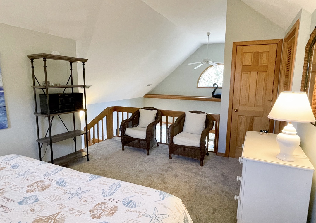 Second Floor: Loft Bedroom with King bed and Half Bath.