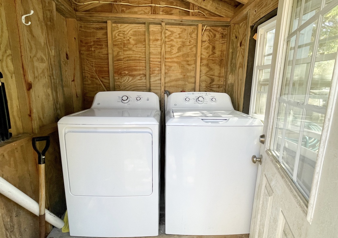 Ground Level: Washer and dryer in ground level laundry shed.